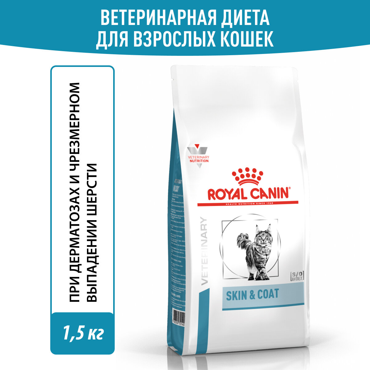 ROYAL CANIN SKIN & COAT для кастрированных котов и стерилизованных кошек с чувствительной кожей и шерстью (1,5 кг)