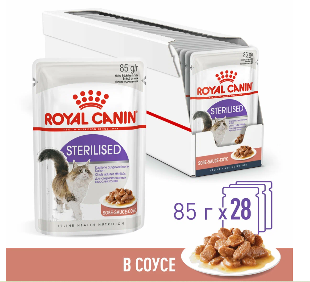 Влажный корм в соусе для Royal Canin Sterilised (Стерилайзд) для стерилизованнных кошек в возрасте от 1 до 7 лет, 28*0,085 кг