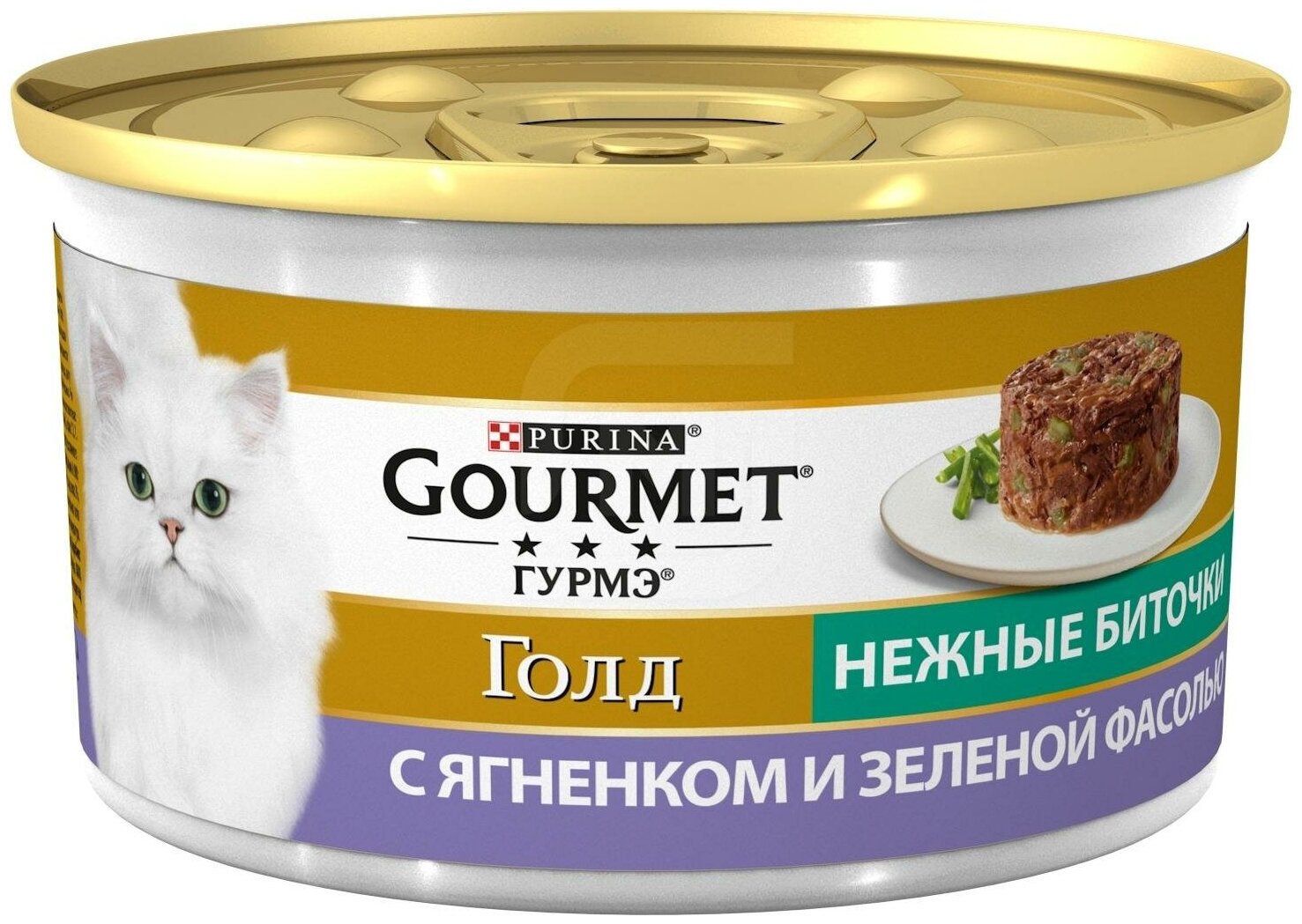 Влажный корм для кошек Gourmet Голд Нежные биточки, с ягненком и зелёной фасолью 85 г (кусочки в соусе) интересное: