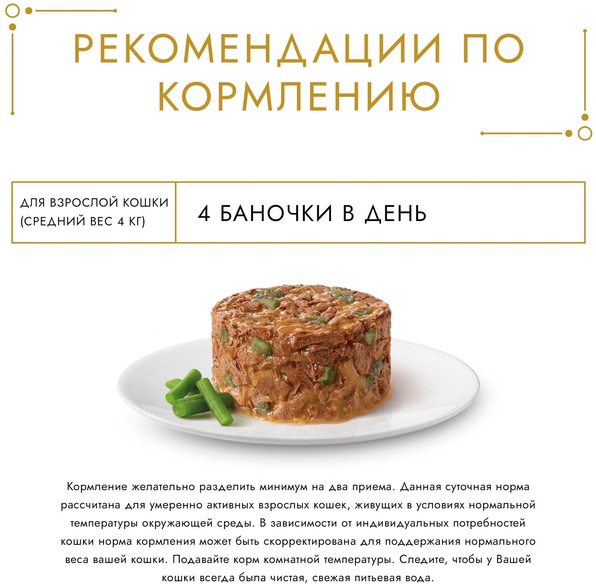 | Дозировка | суточная норма: 2-3 баночки в день для взрослой кошки (средний вес 4 кг), в несколько приемов |