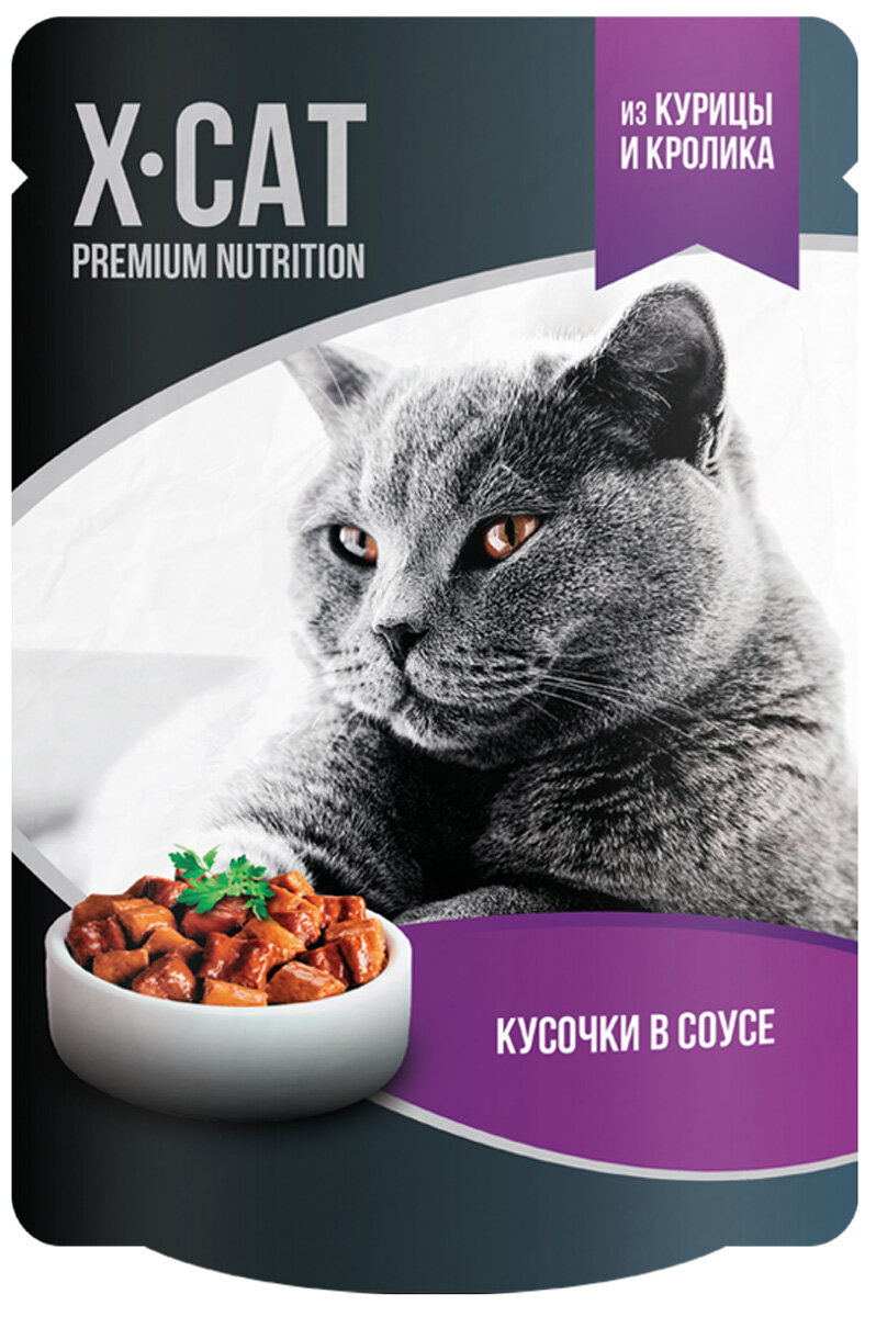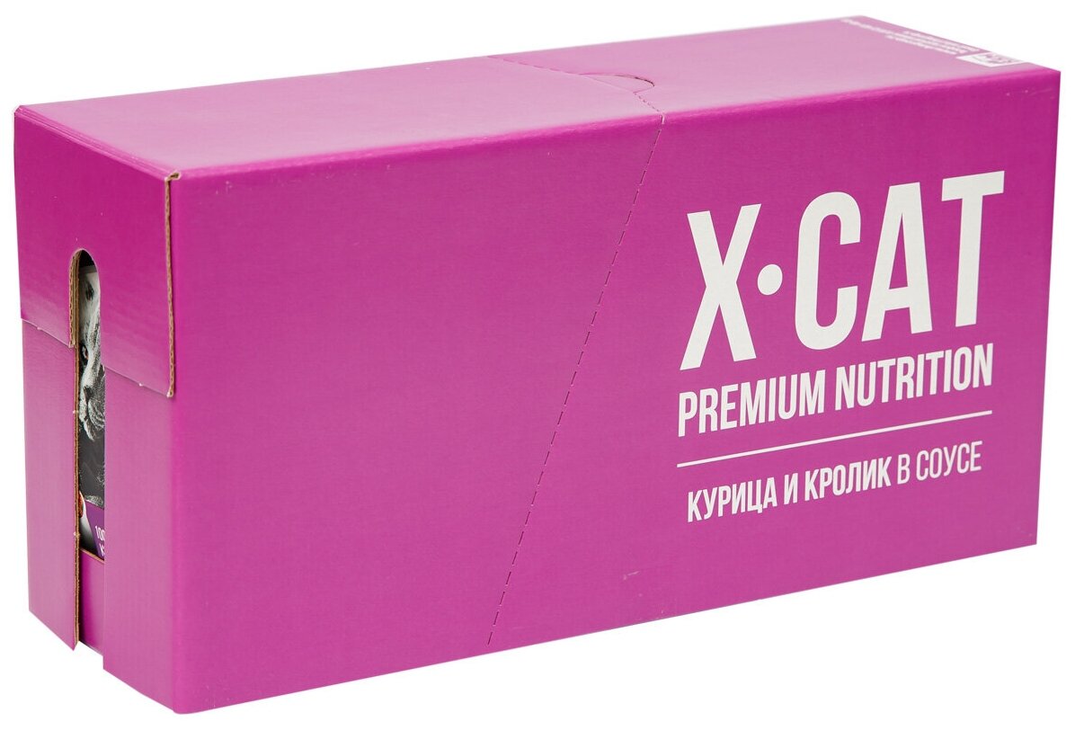 X-CAT для взрослых кошек с курицей и кроликом в соусе 85 гр пауч 85 гр х 10 шт