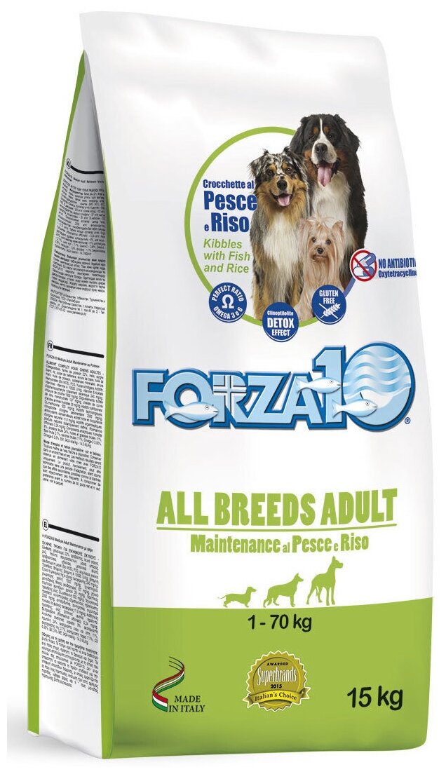 Forza10 ВИА Сухой корм для взрослых собак всех пород из рыбы и риса 01350020, 15,000 кг