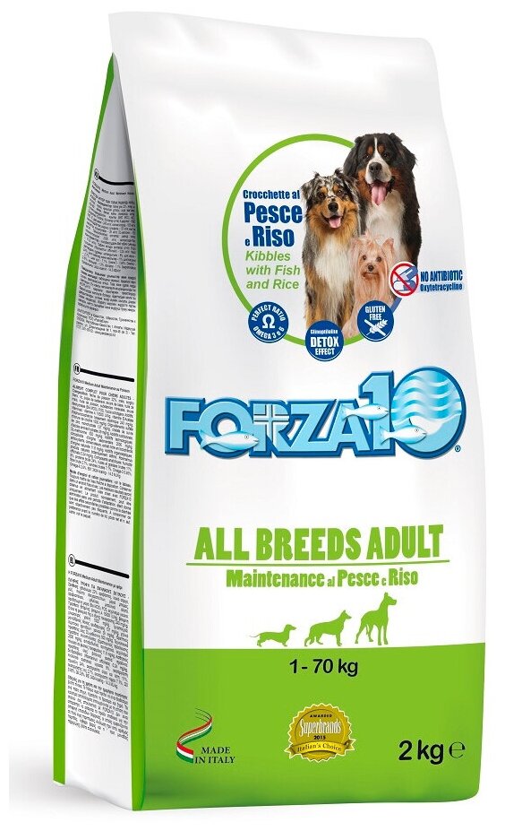 Сухой корм для собак Forza10 ALL BREEDS ADULT рыба, с рисом, 2 кг