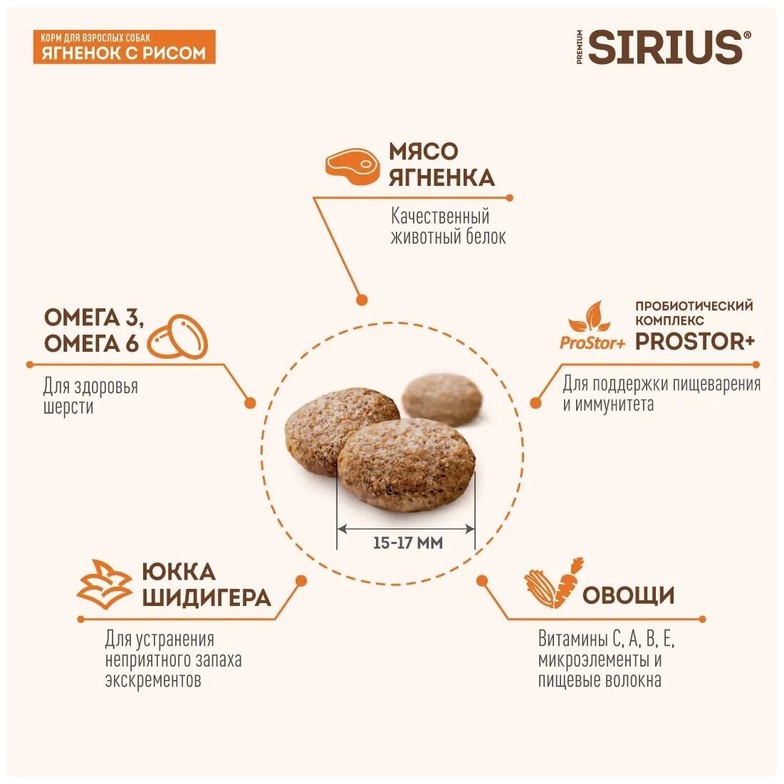 Сухой корм SIRIUS PREMIUM, Сириус для собак старше 1 года, ягненок с рисом, 2 кг