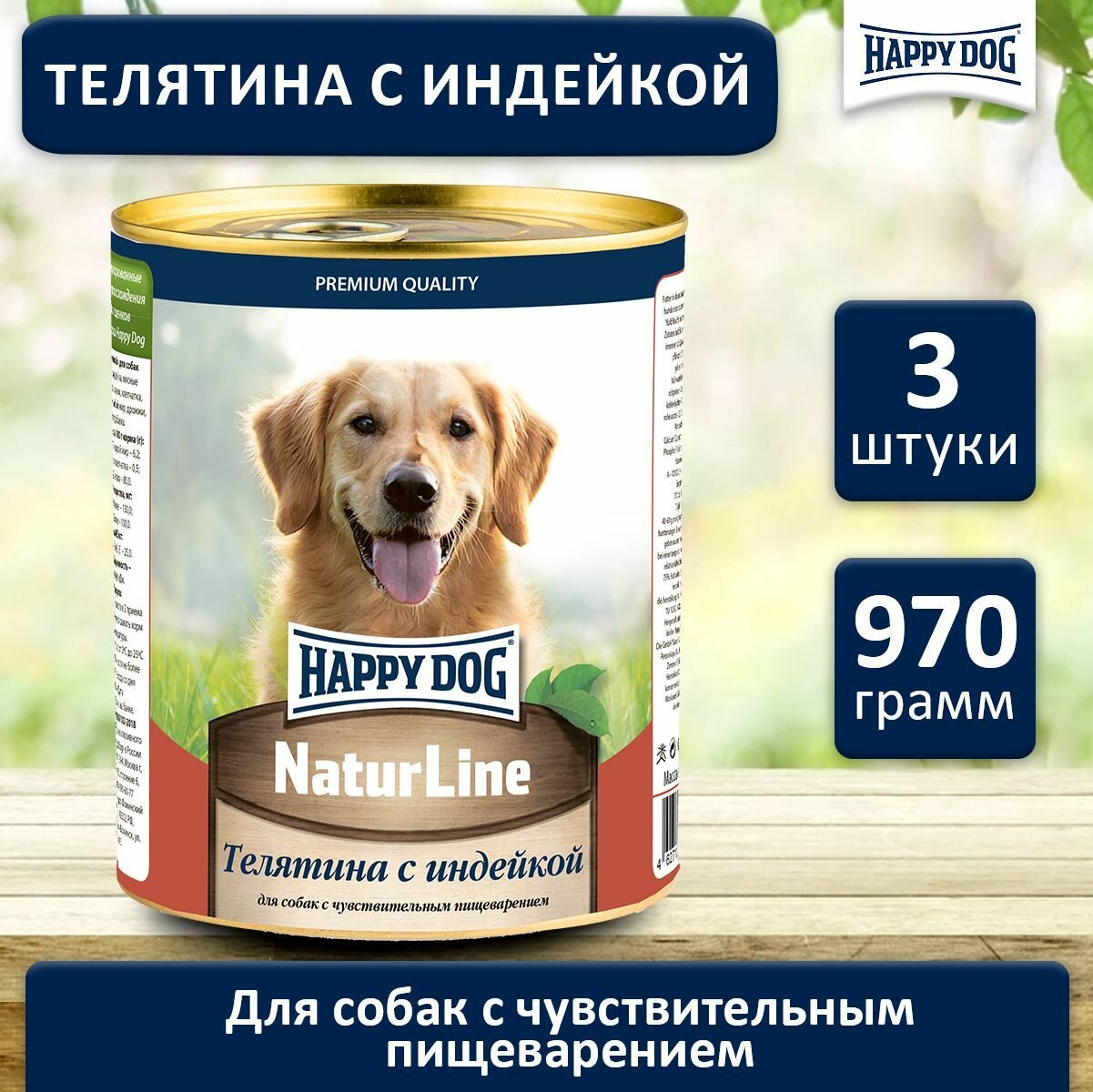 Консервы для собак Happy Dog NatureLine (Телятина с индейкой), 970 гр. по 3 шт.