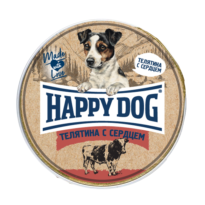 Корм HAPPY DOG для собак, телятина с сердцем 125гр