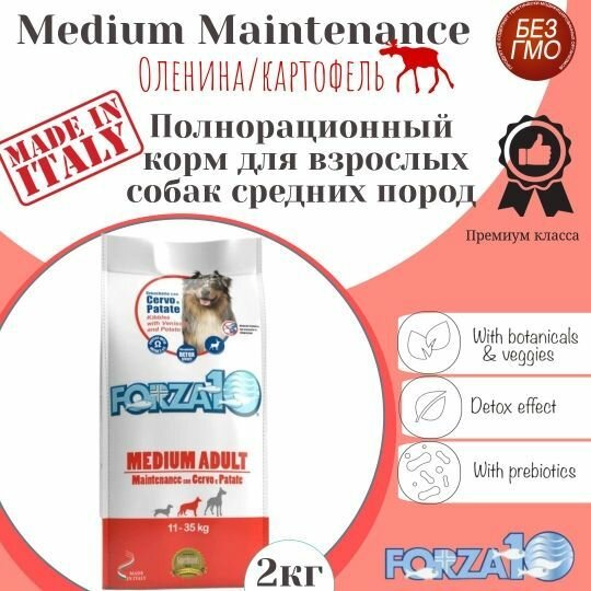 FORZA10 DOG MAINTENANCE ADULT MEDIUM для взрослых собак средних пород с олениной и картофелем (2 кг)