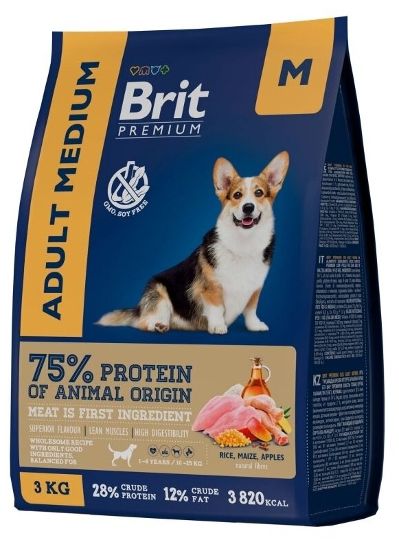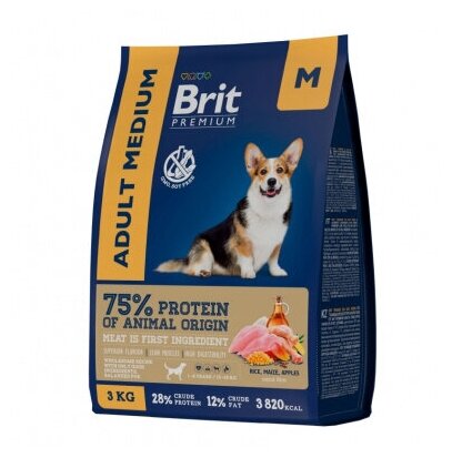 Brit Premium Dog Adult Medium корм сухой для взрослых собак с курицей 1шт - 3кг
