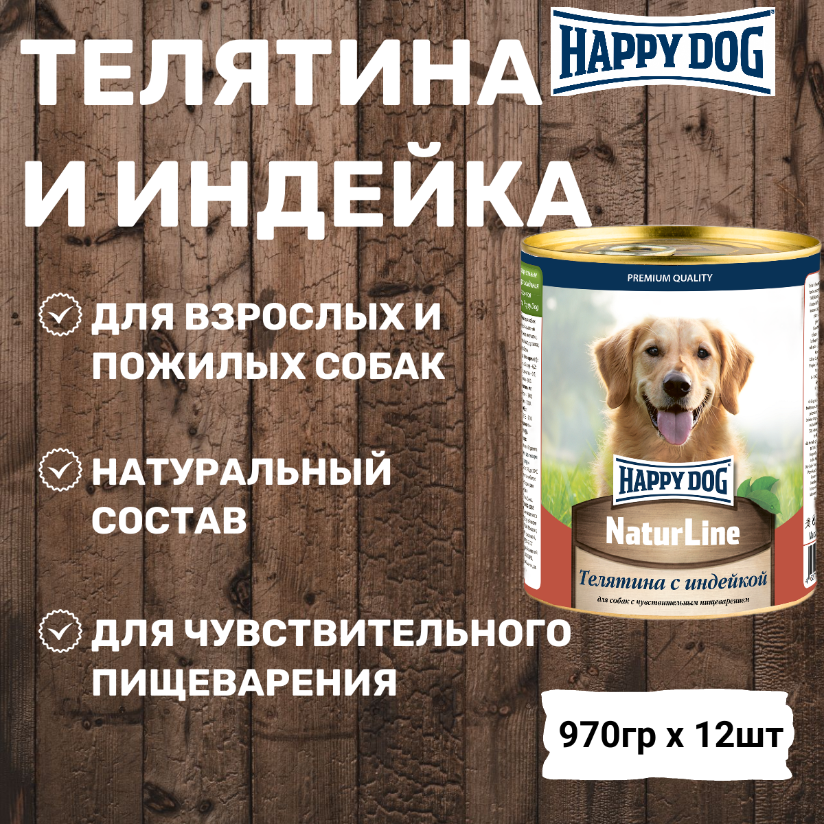 Купить HAPPY DOG NATUR LINE для взрослых собак с телятиной и индейкой (970 гр х 12 шт)