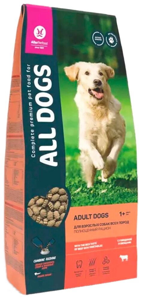 Купить ALL DOGS сухой корм для взрослых собак всех пород, с говядиной и овощами 20 кг