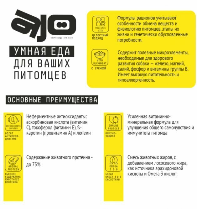 Сухой корм для собак малых пород AJO с гречкой 8 кг