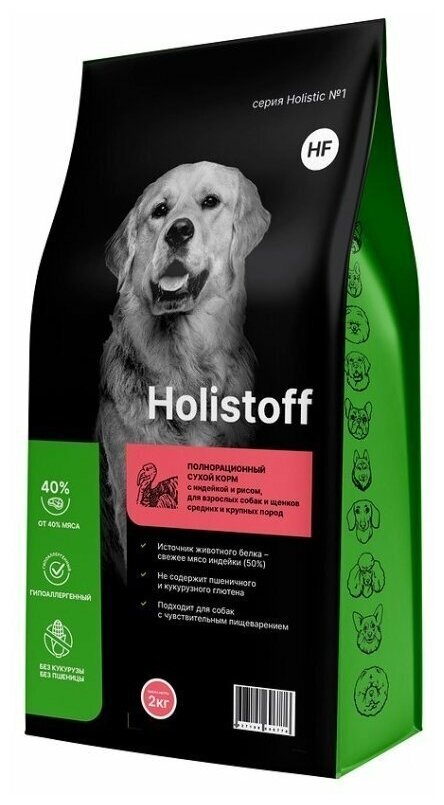 HOLISTOFF гипоаллергенный для собак и щенков средних и крупных пород с индейкой и рисом (12 кг)
