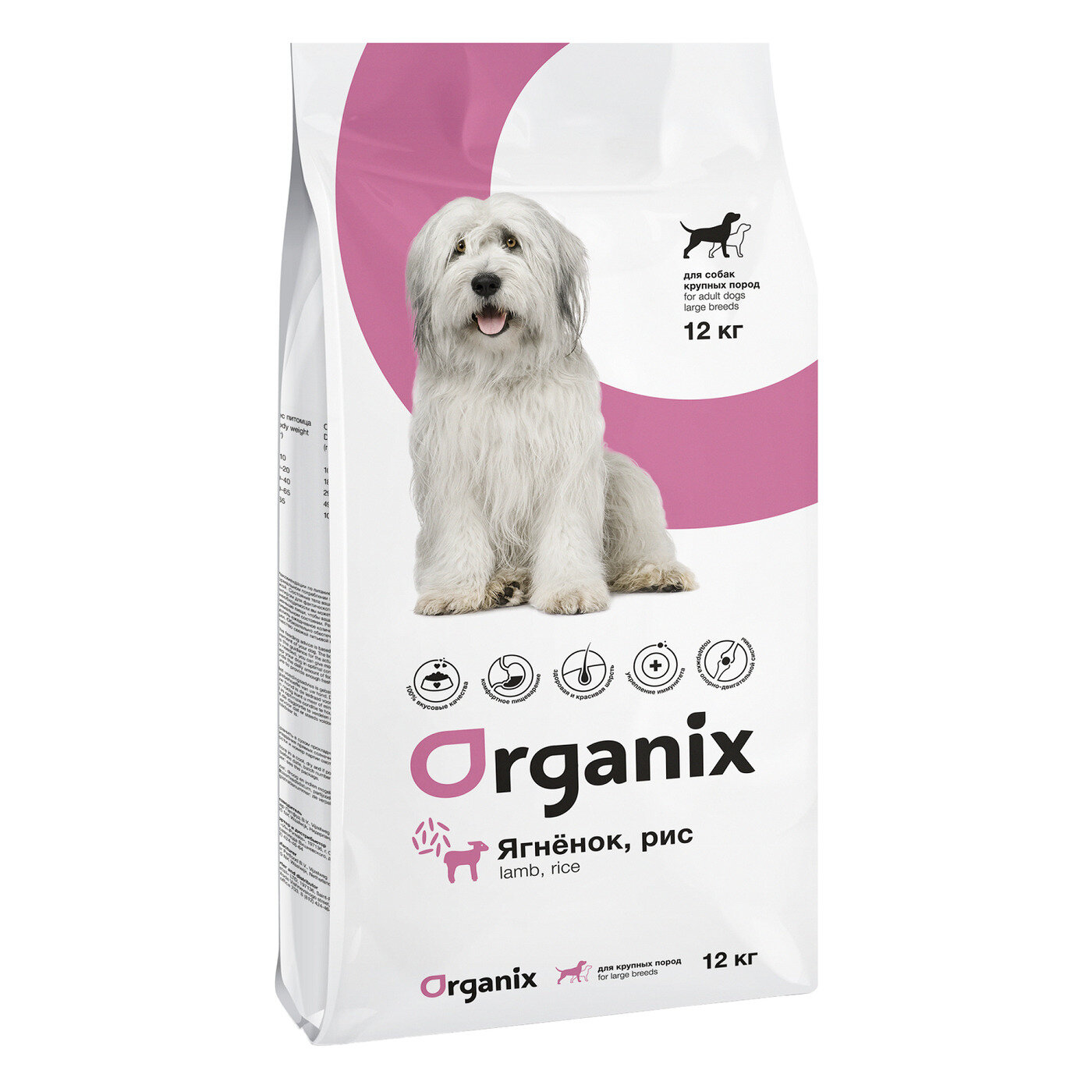 Organix Сухой корм с ягненком и рисом для взрослых собак крупных пород, 12 кг