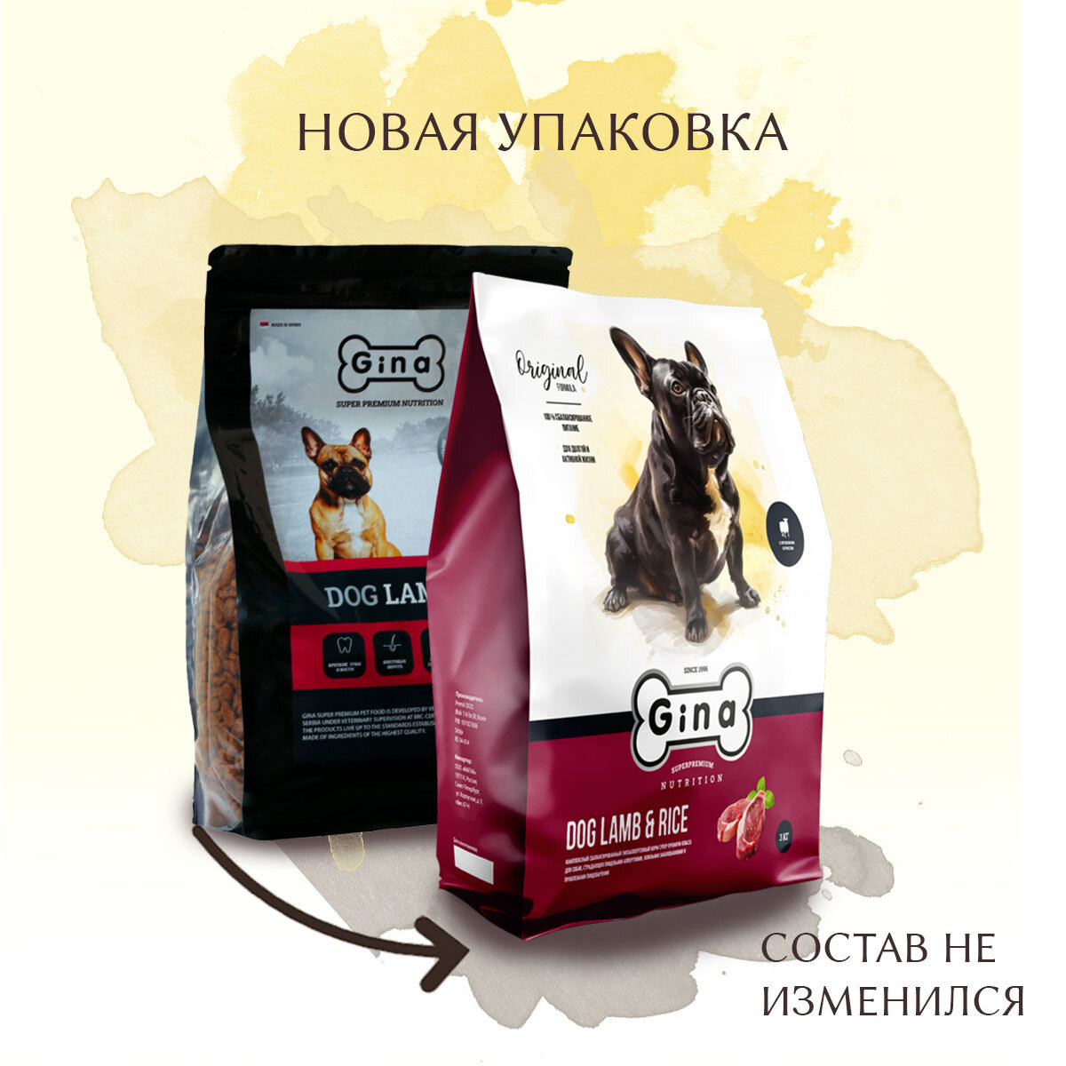 Сухой корм GINA DOG LAMB & RICE для взрослых собак с чувствительным пищеварением с ягненком и рисом, 3 кг