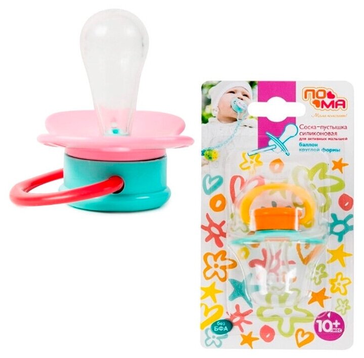 Пома Соска-пустышка силиконовая, баллон круглой формы, 1 шт. (Силикон, Полипропилен), розовая, 10+ интересное:
