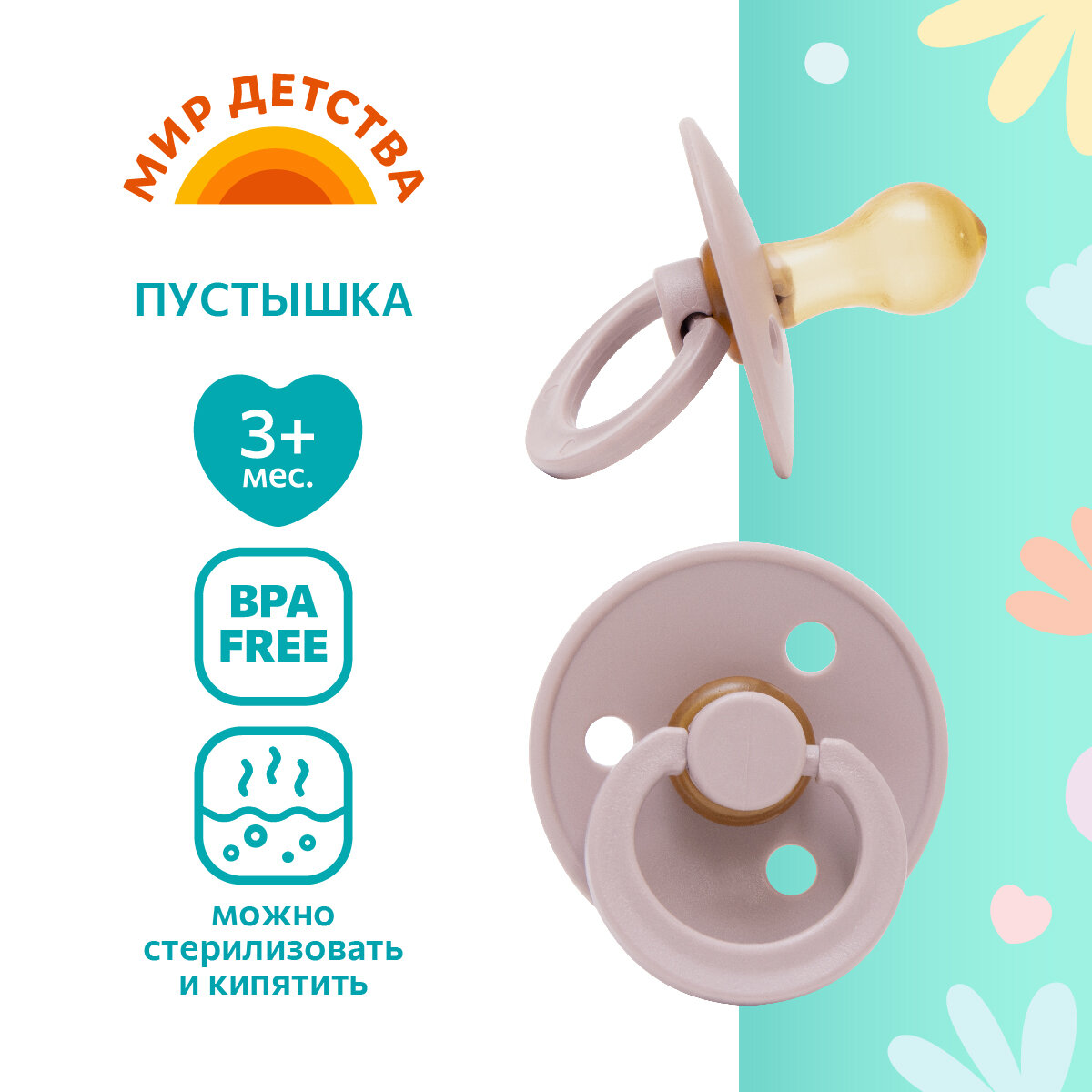 Соска-пустышка классическая латексная Мир детства, от 3+ мес.