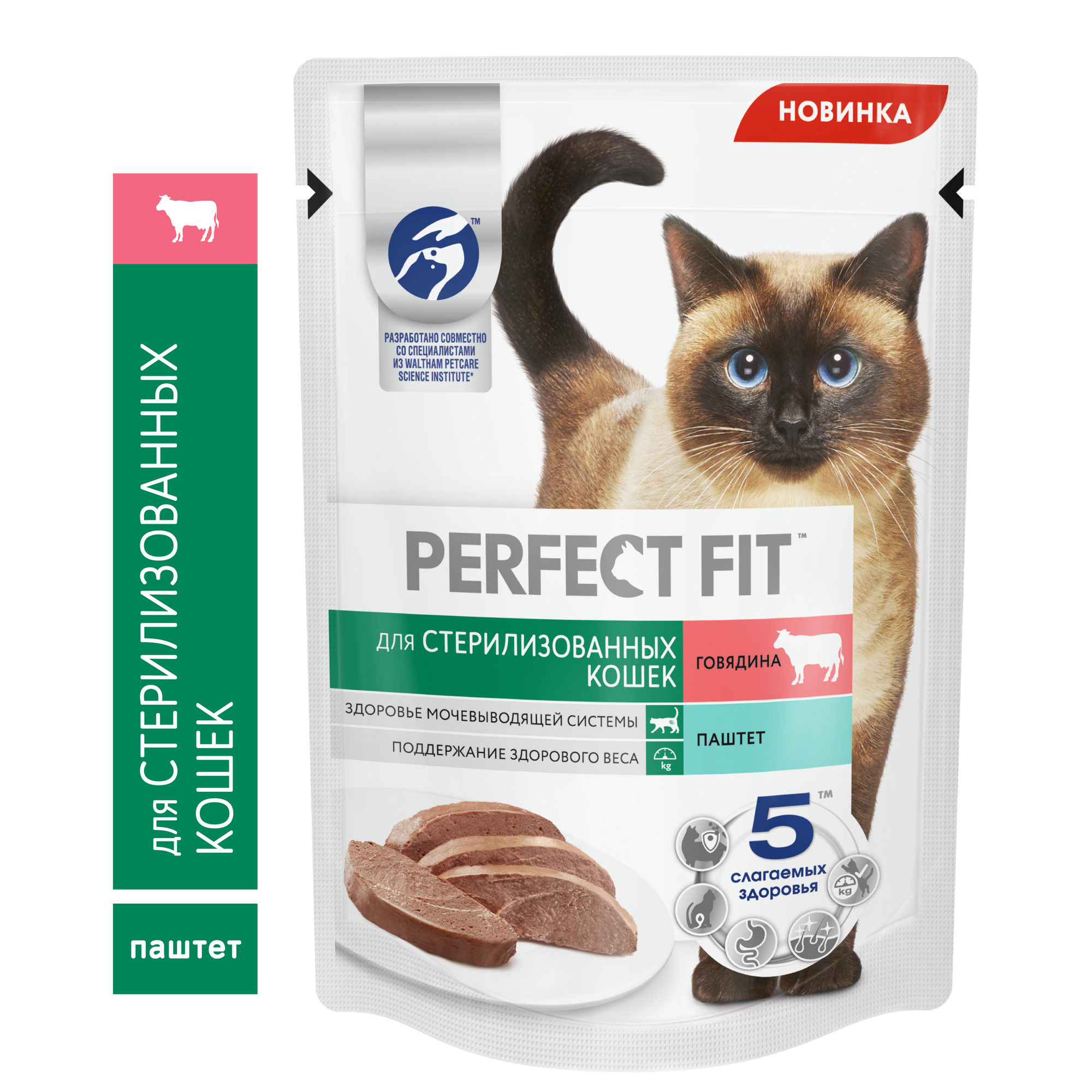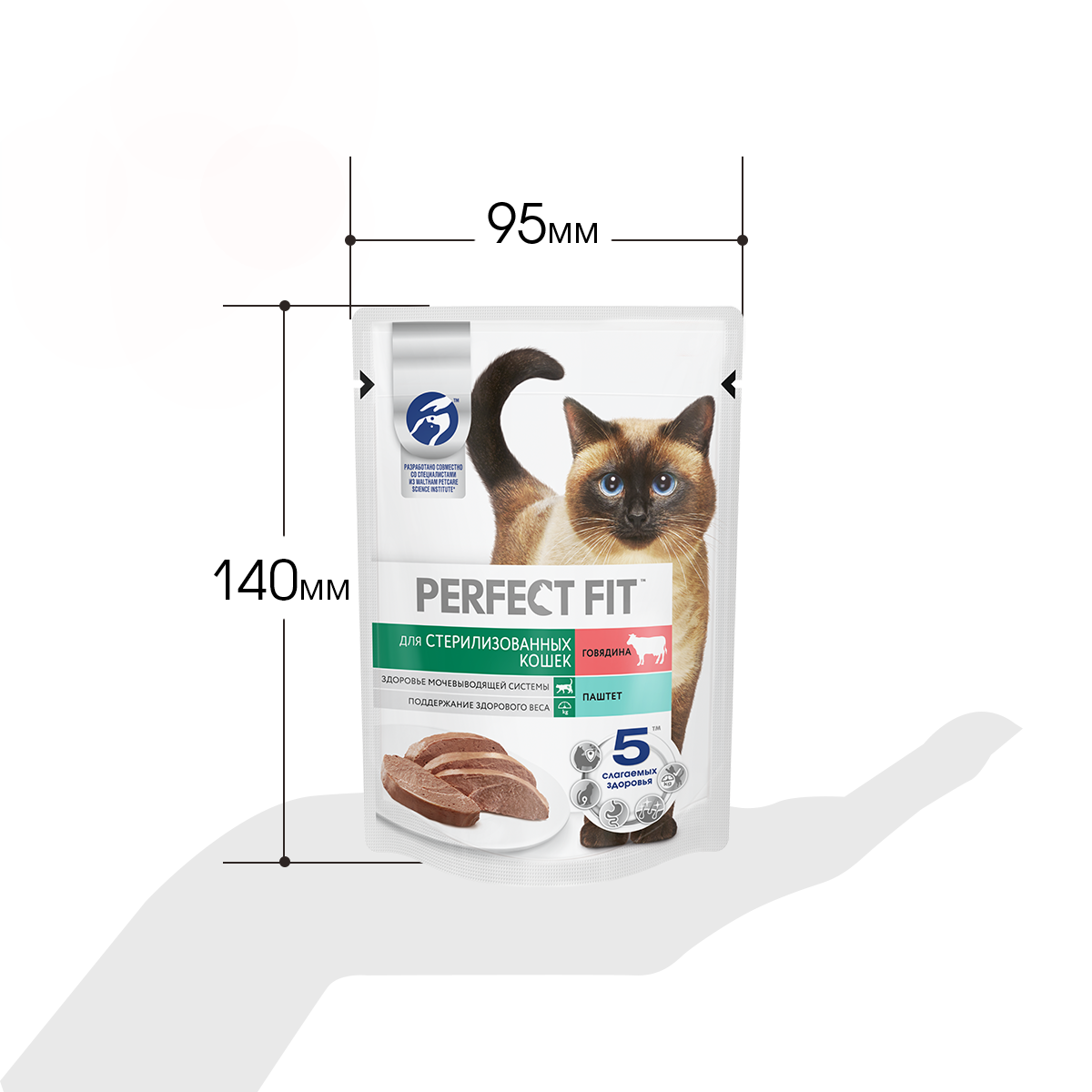 Perfect Fit пауч для взрослых стерилизованных кошек (паштет) Говядина, 75 г. упаковка 28 шт