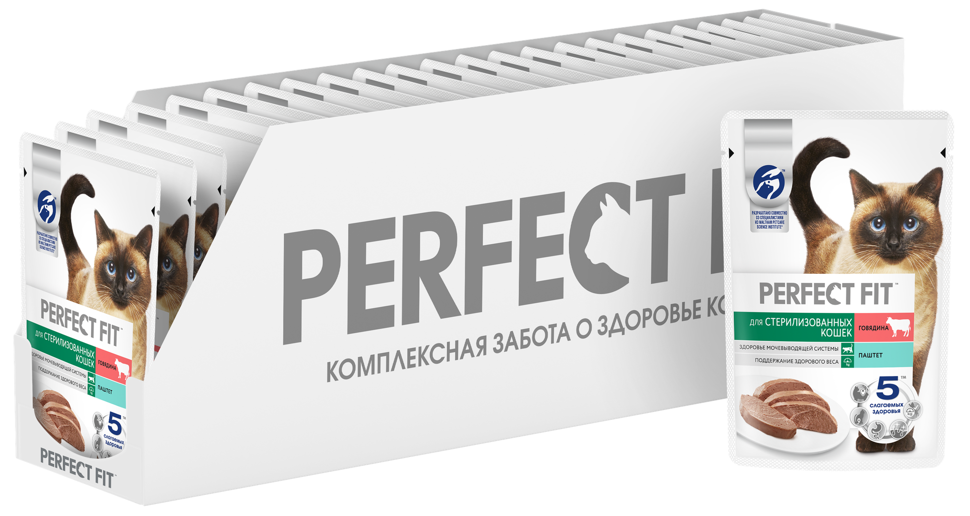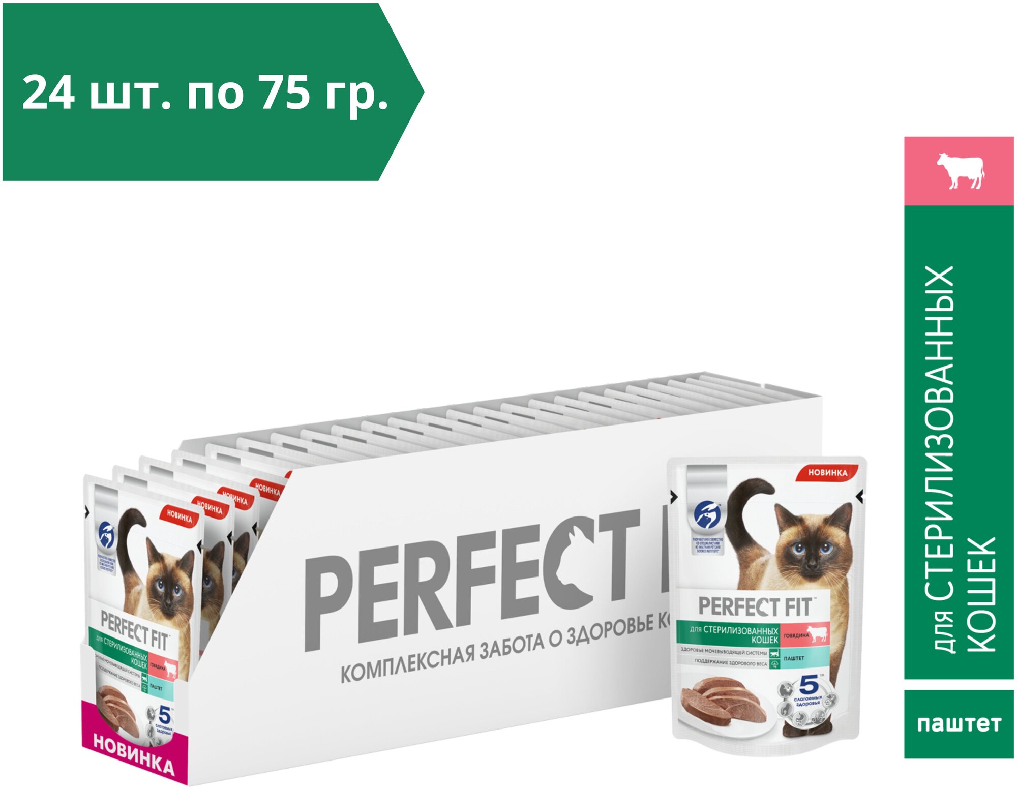 Perfect Fit пауч для взрослых стерилизованных кошек (паштет) Говядина, 75 г. упаковка 24 шт
