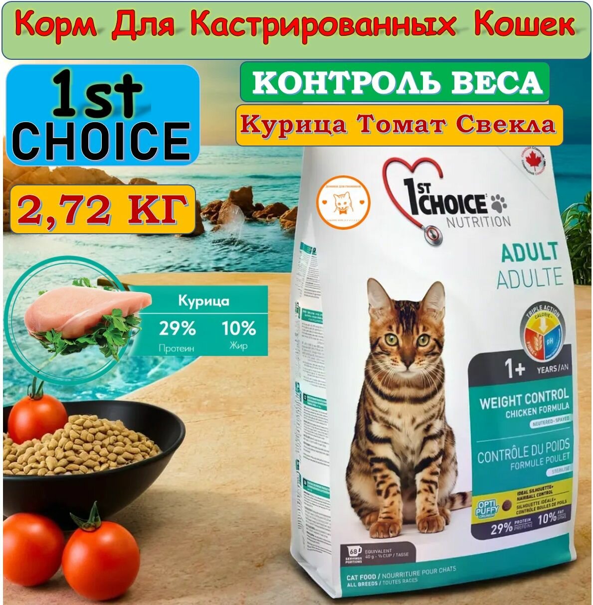 1st CHOICE корм 10кг для кастр и стерил кошек Контроль веса