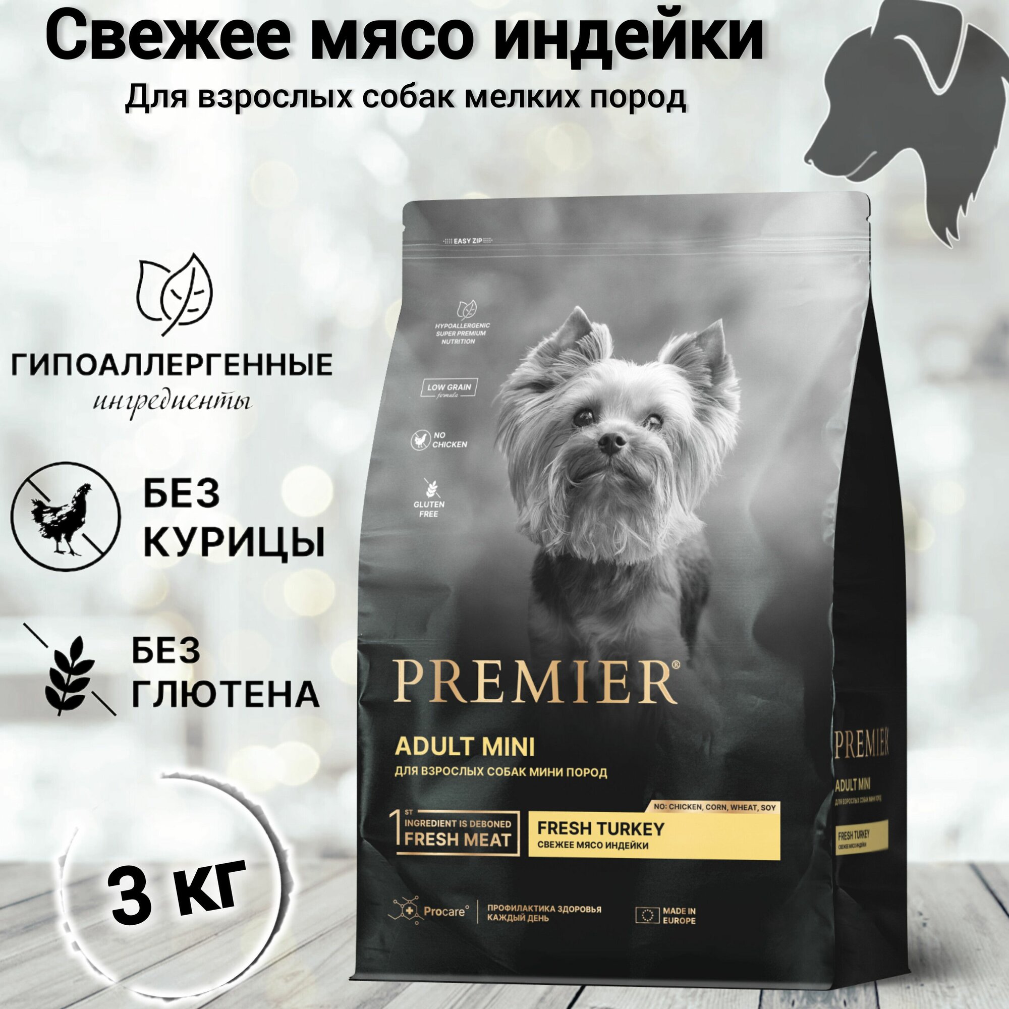 Купить Сухой корм для собак PREMIER Dog Turkey ADULT Mini (Свежее мясо индейки для собак мелких пород) 3 кг.
