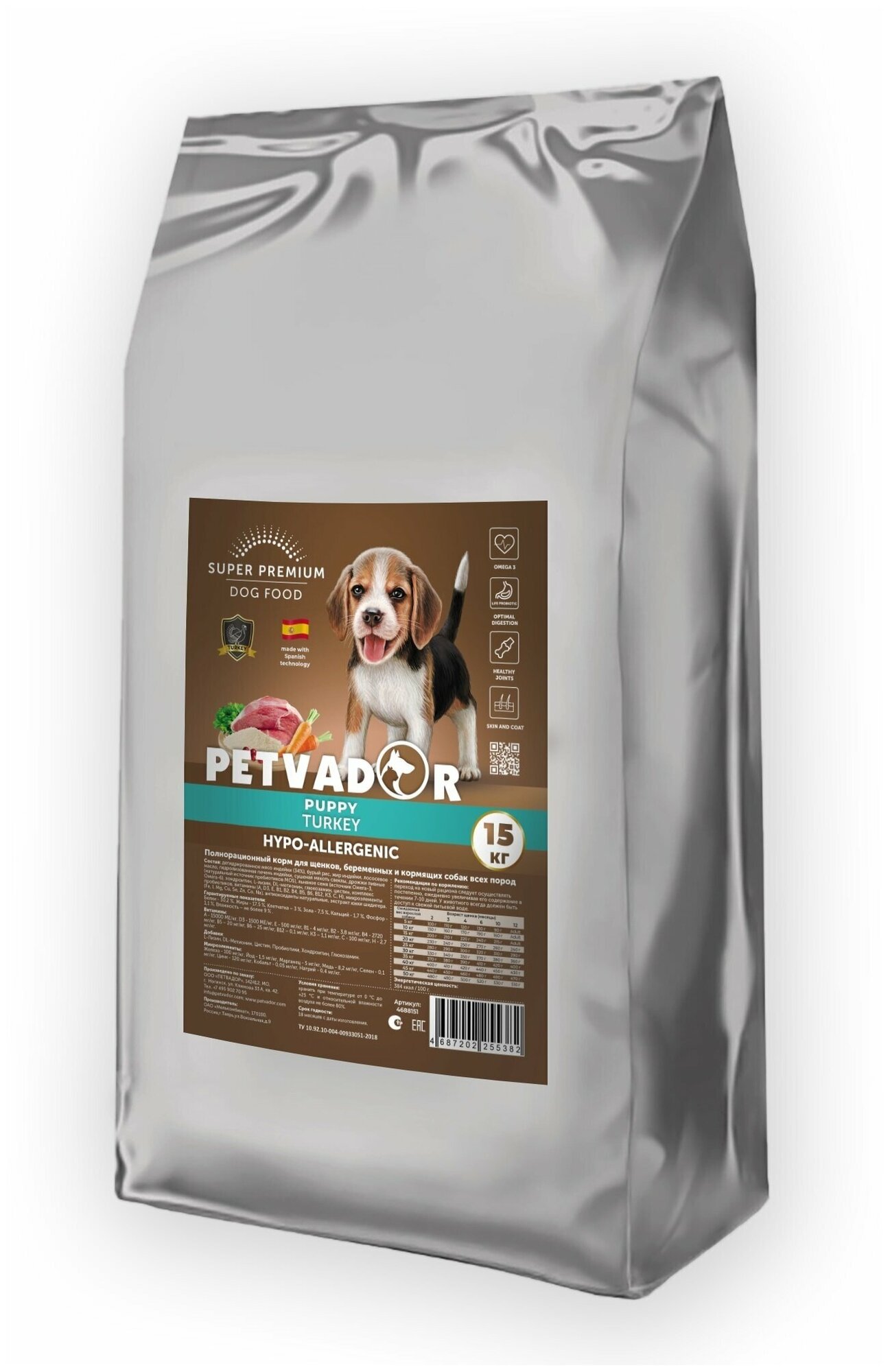 PETVADOR Полнорационный корм для щенков, беременных и кормящих собак всех пород 15 кг интересное:
