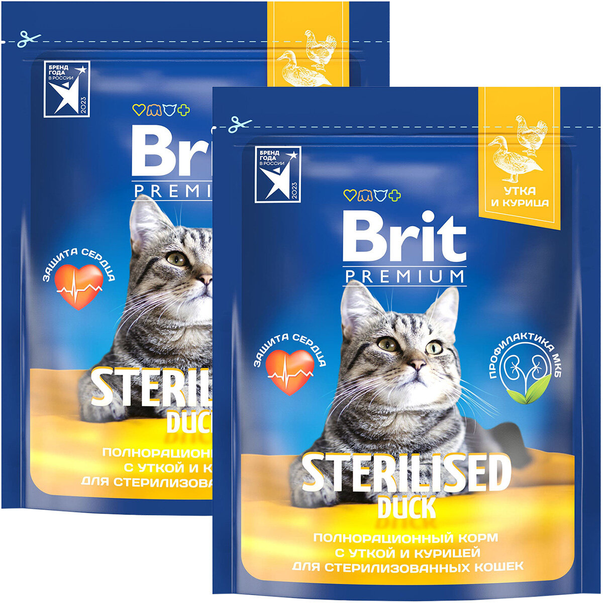 Купить BRIT PREMIUM CAT DUCK & CHICKEN для взрослых кастрированных котов и стерилизованных кошек с уткой и курицей (0,4 + 0,4 кг)