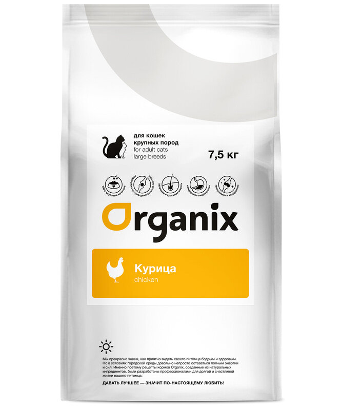 СохранитьORGANIX ADULT CAT LARGE BREEDS CHICKEN для взрослых кошек крупных пород с курицей (7,5 кг) интересное: