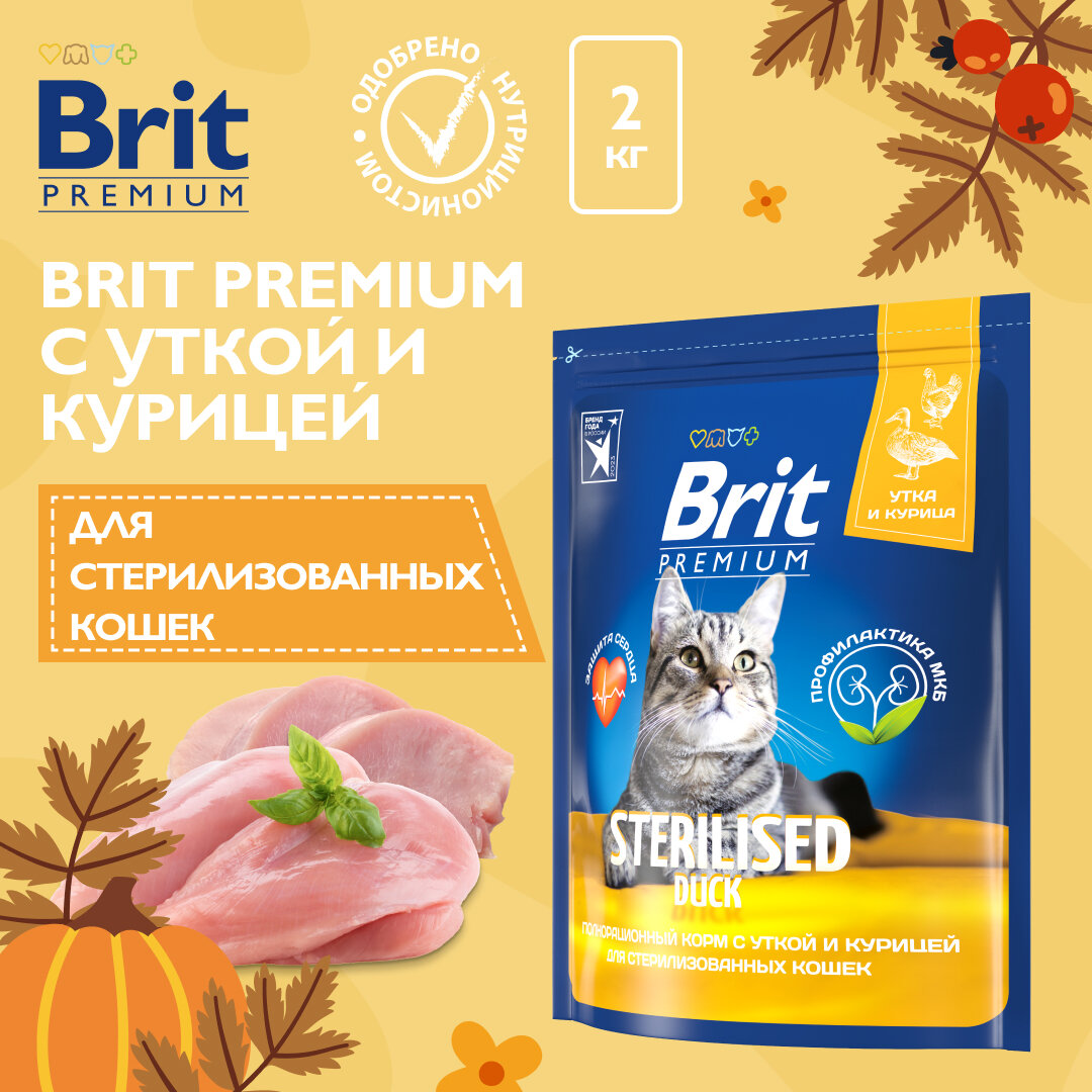 Сухой корм для стерилизованных кошек Брит Премиум с уткой и курицей, 2 кг