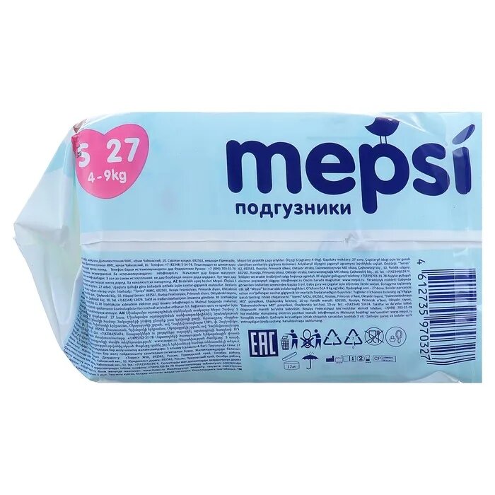 Ниже Вы можете прочитать отзывы на Mepsi Подгузники S (27шт) 4-9кг, ознакомится с подробными характеристиками, посмотреть интересные обзоры и фотографии на Mepsi Подгузники S (27шт) 4-9кг.