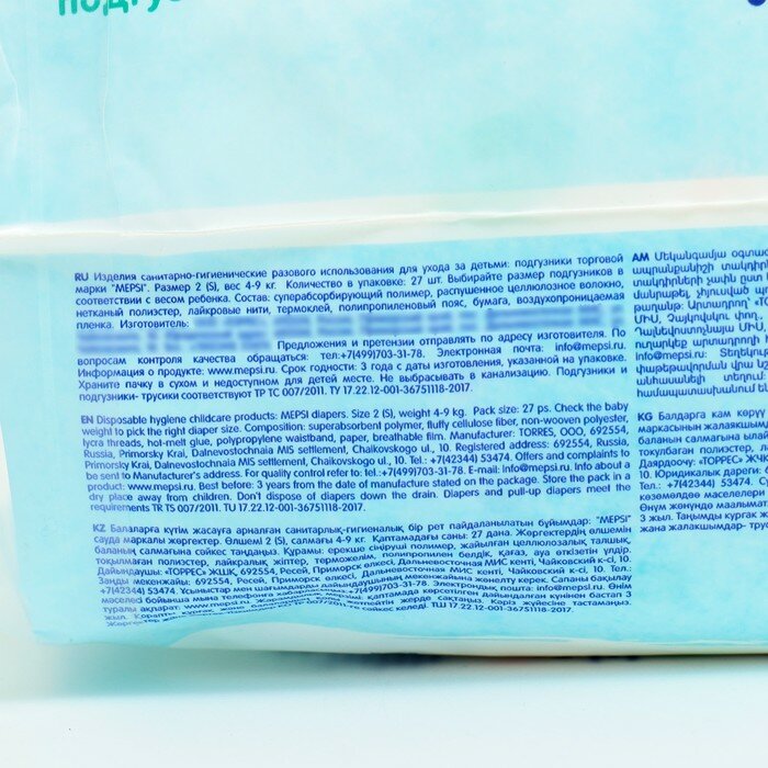 Подгузники MEPSI S (4-9 кг) 27 шт.