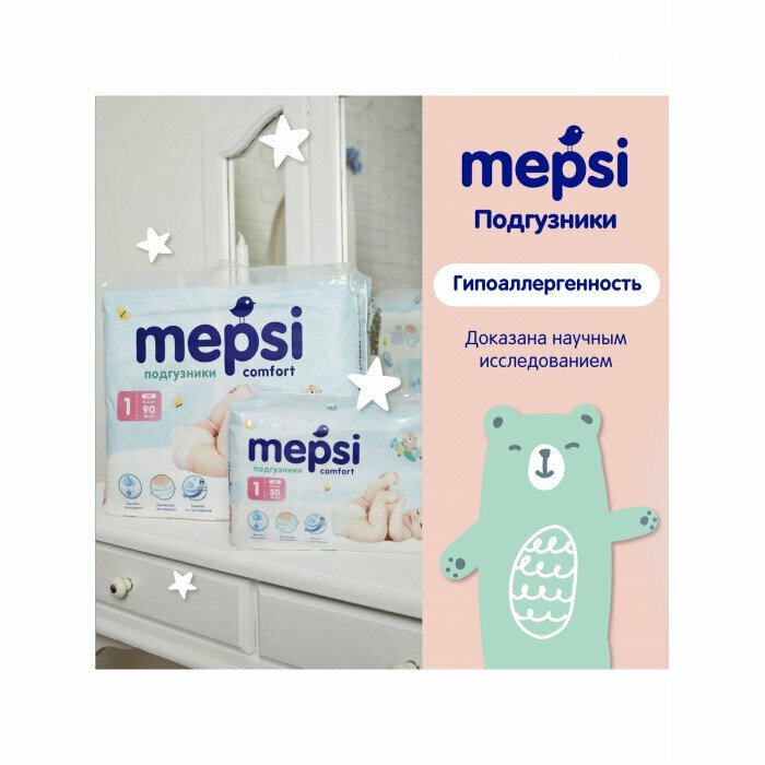 Подгузники Mepsi детские, 1 размер, NB (до 6кг), 90 шт.