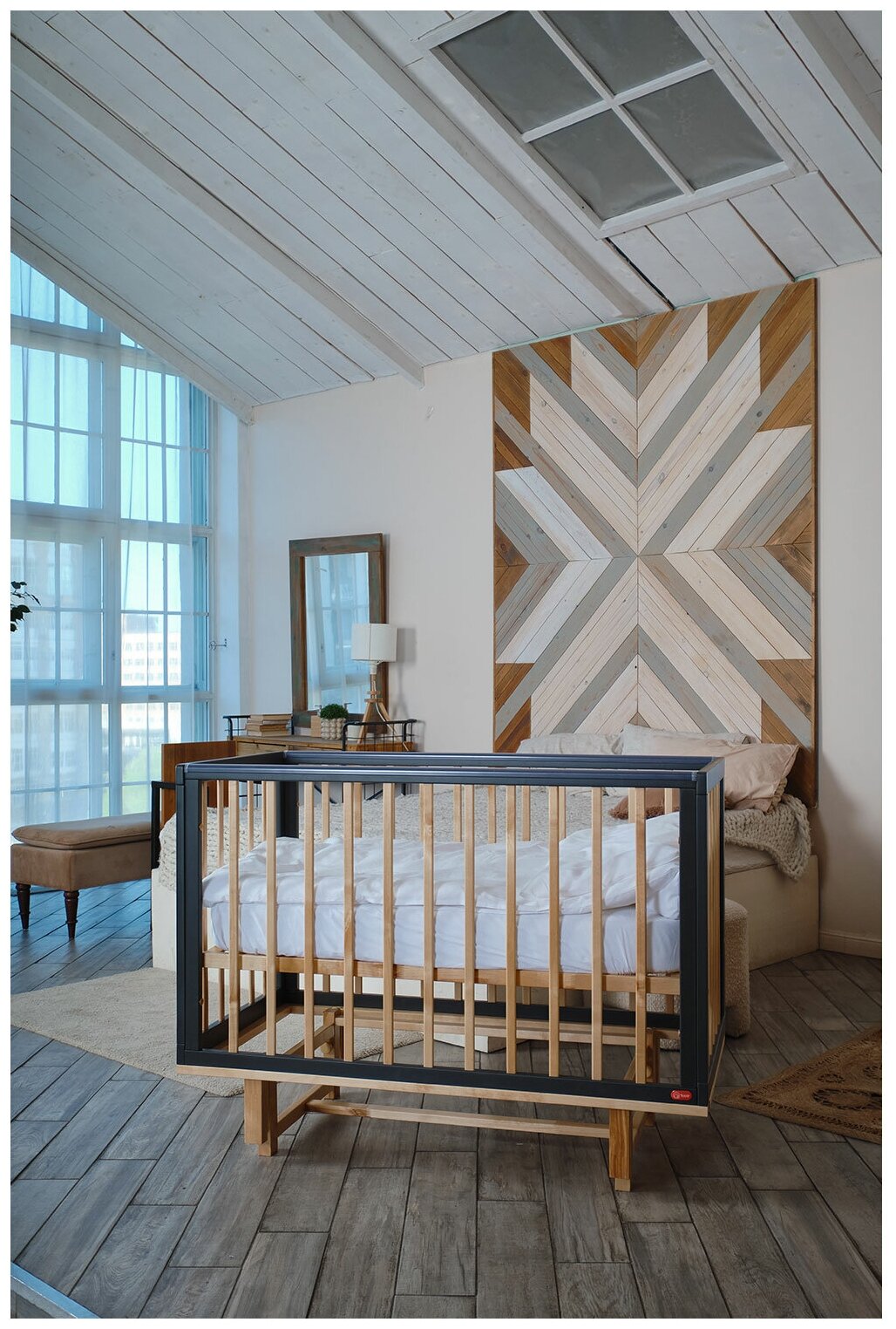 Есть три уровня, где находится реечное дно, что удобно добраться до малыша. Пока установили на самый верхний для новорожденного(с моим 170см и матрасом шириной в 12 см взять ребёнка возможно без усилий больших) |
