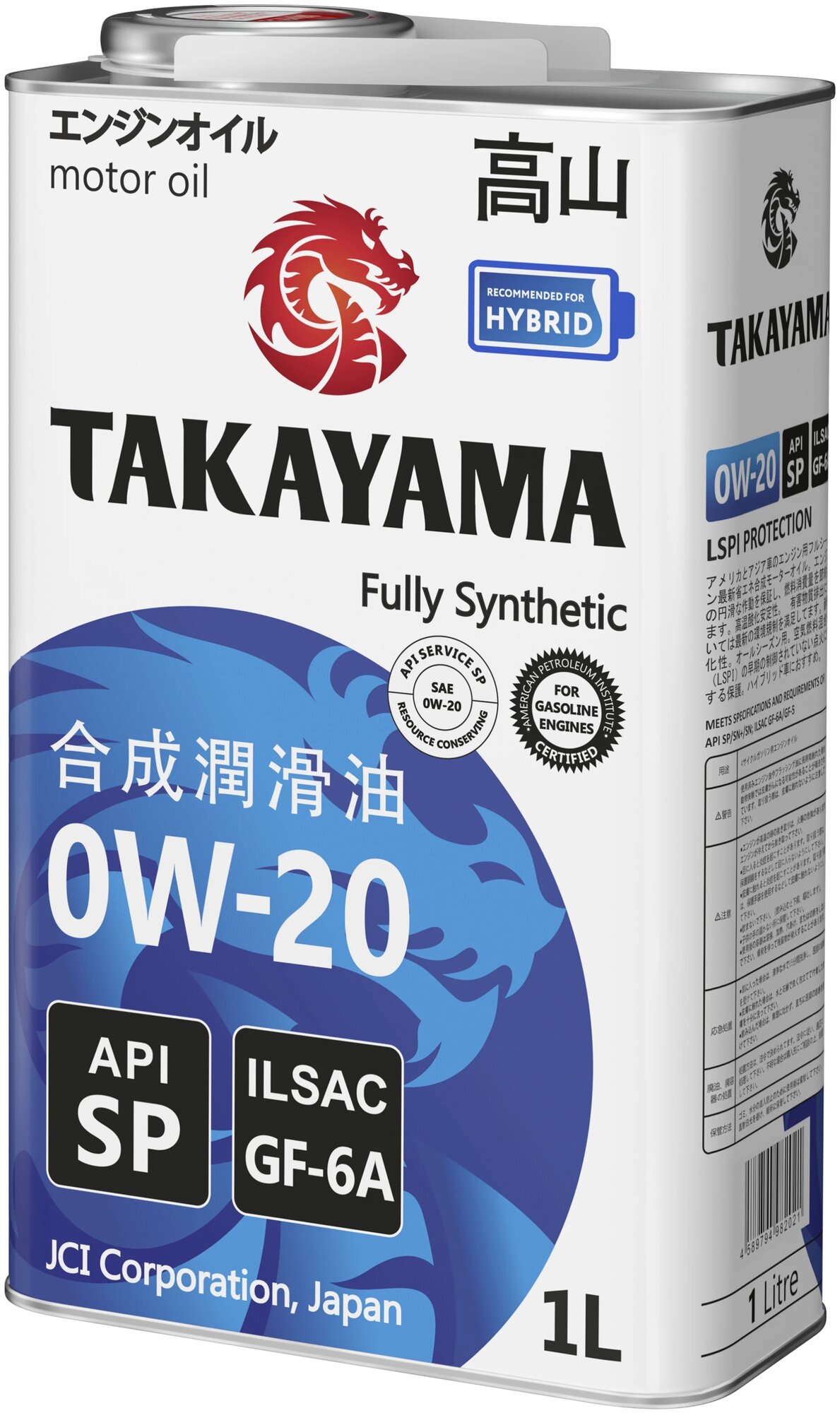 Масло моторное TAKAYAMA API SP 0W-20, ILSAC GF-6A, синтетическое, 1 л