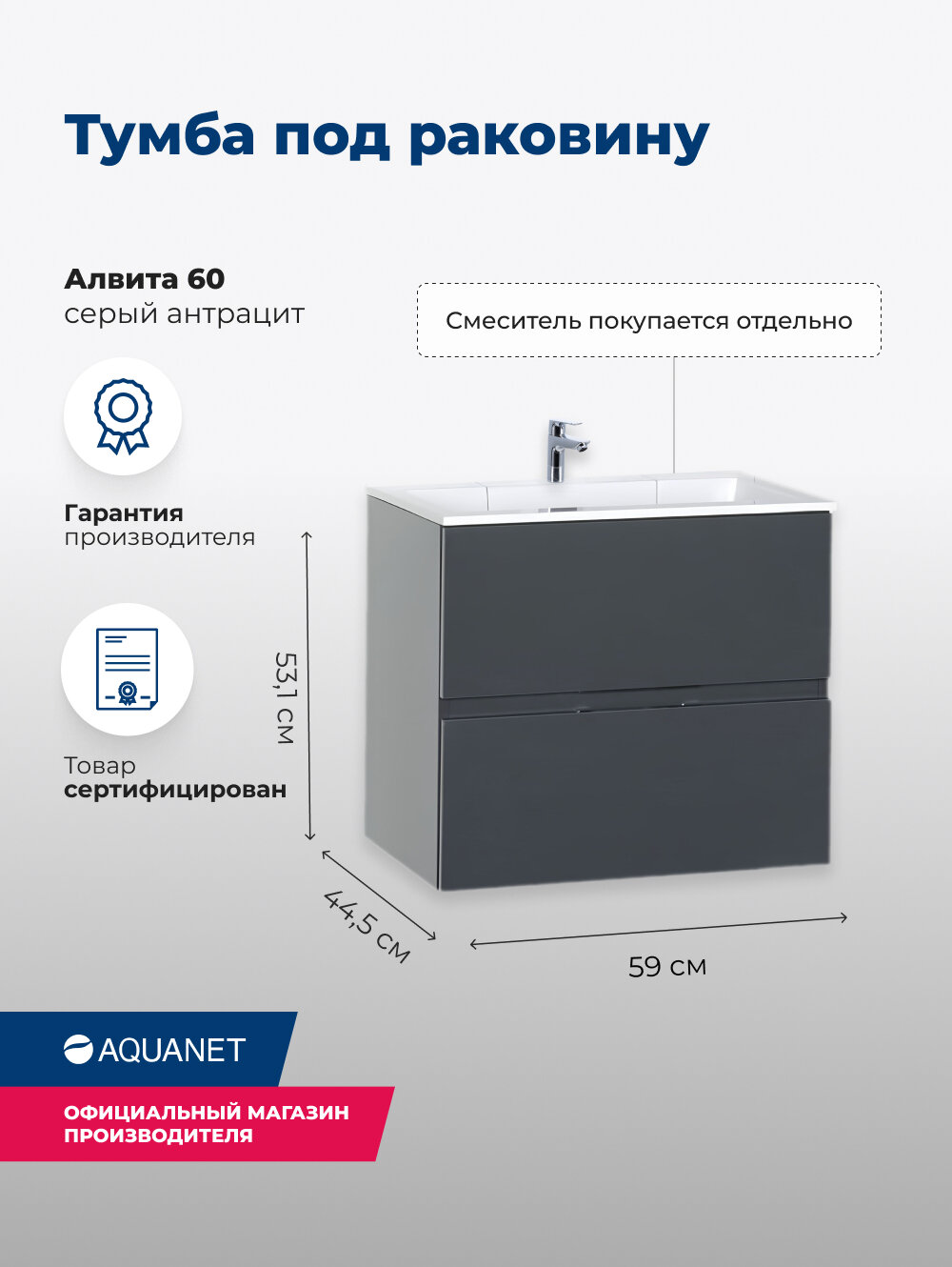 Тумба под раковину Aquanet Алвита 60 серый антрацит интересное: