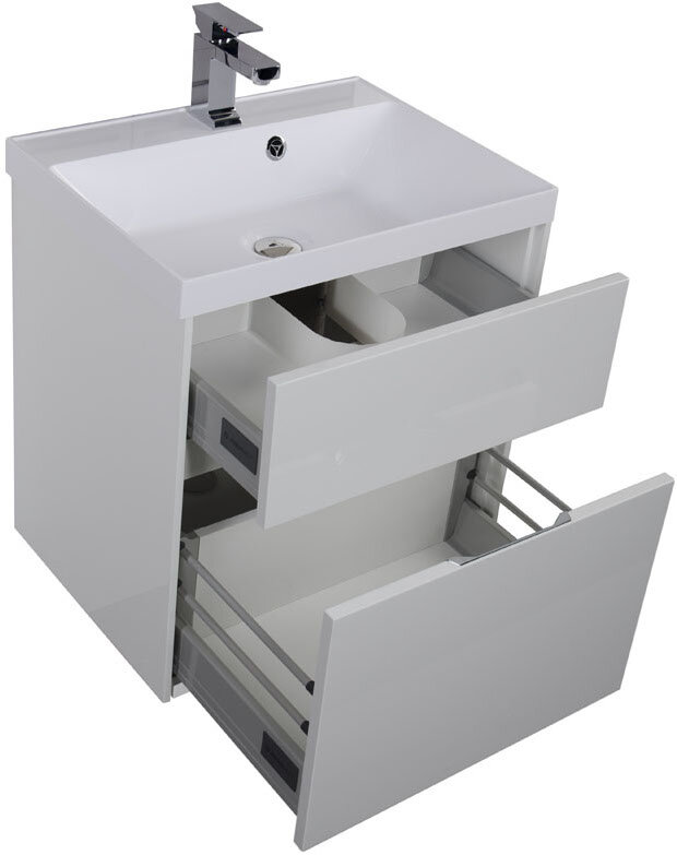 Тумба с раковиной Aquanet Латина 60 2 ящика белая интересное: