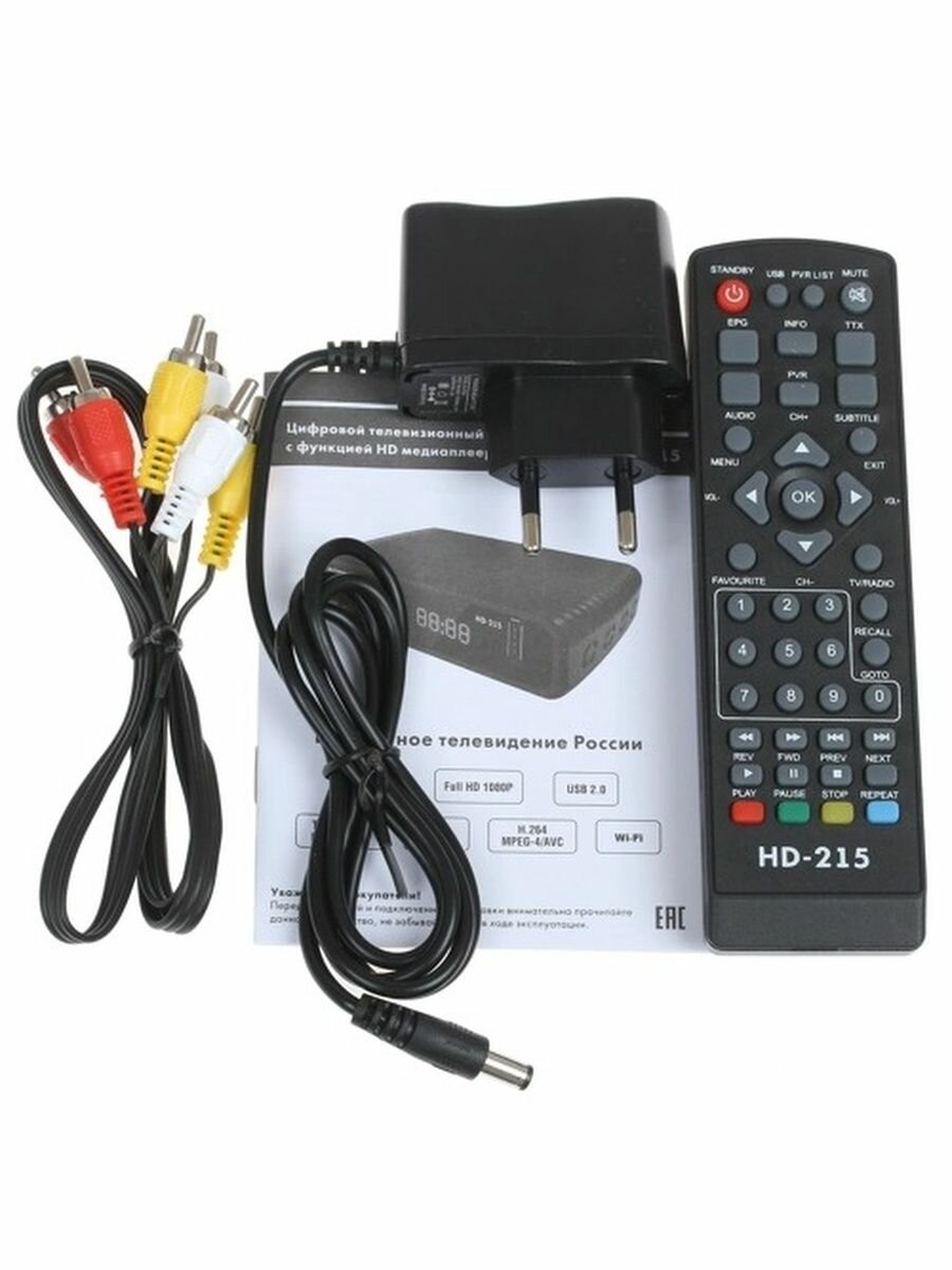 Цифровой ресивер DVB-T2 сигнал Эфир HD-215 черный LCD дисплей