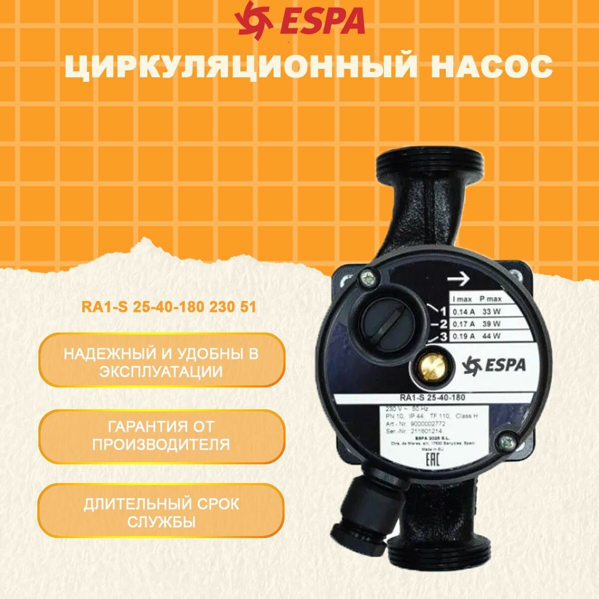 Насос циркуляционный ESPA RA1 S 25-40-180 230 50 (1х220В; 44Вт) интересное: