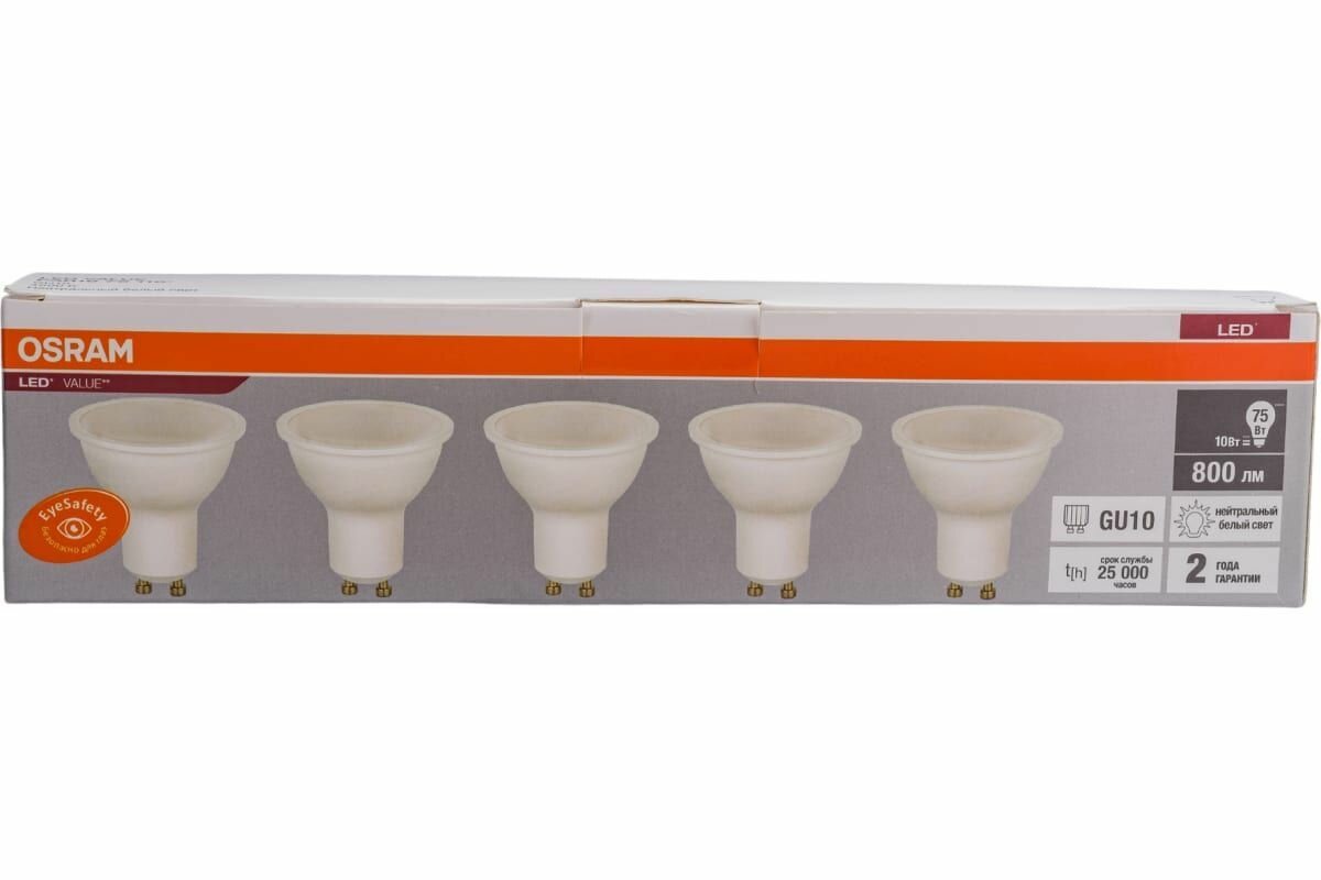Упаковка светодиодных ламп 5 шт. OSRAM LED Value LVPAR1675 10SW/840, GU10, PAR16, 10 Вт, 4000 К