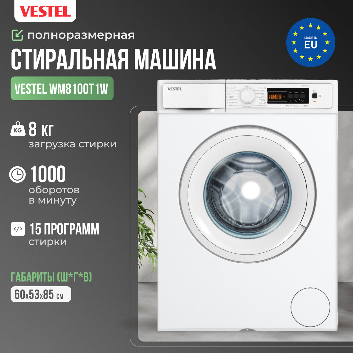 Стиральная машина фронтальная VESTEL WMS8100T1W белый (пар) интересное: