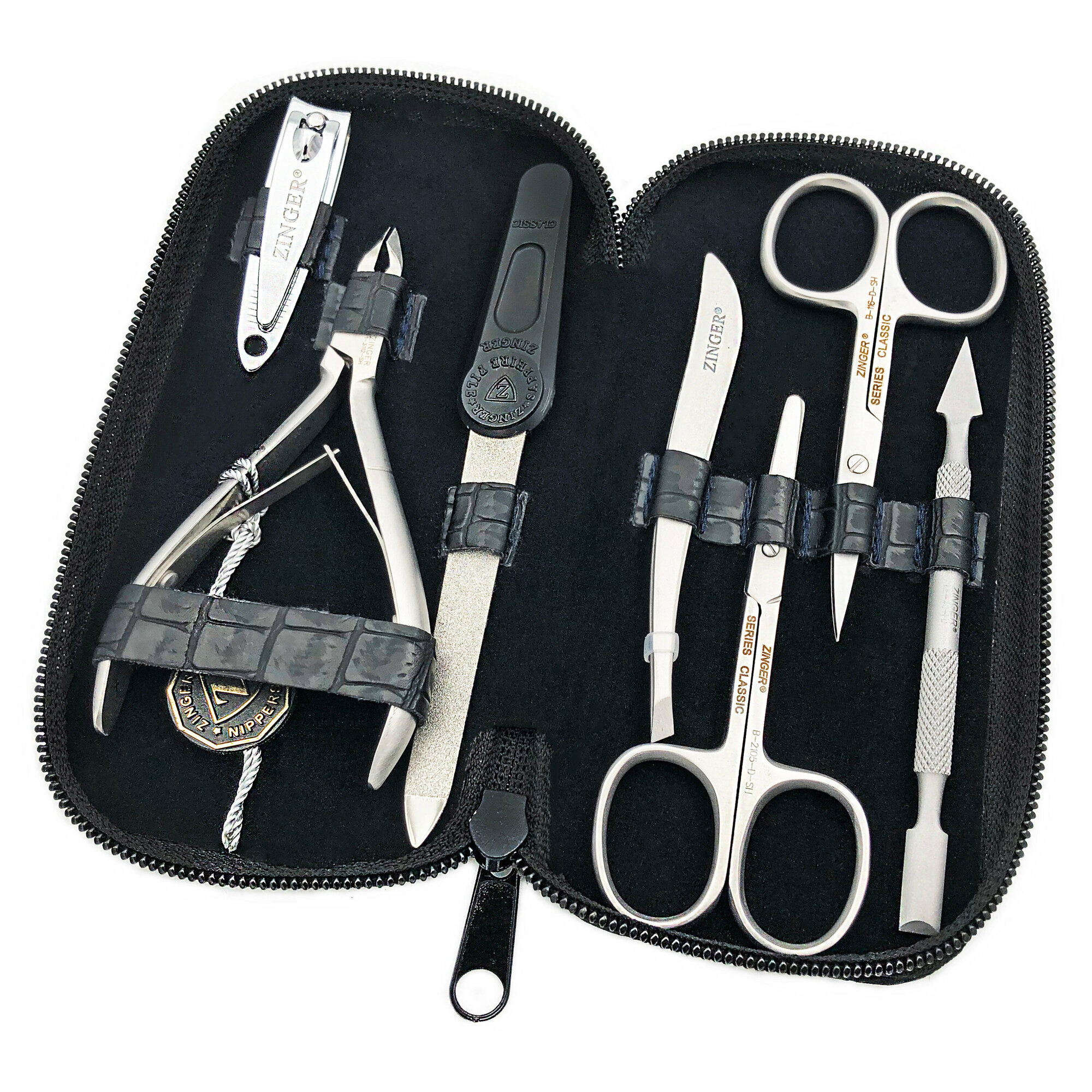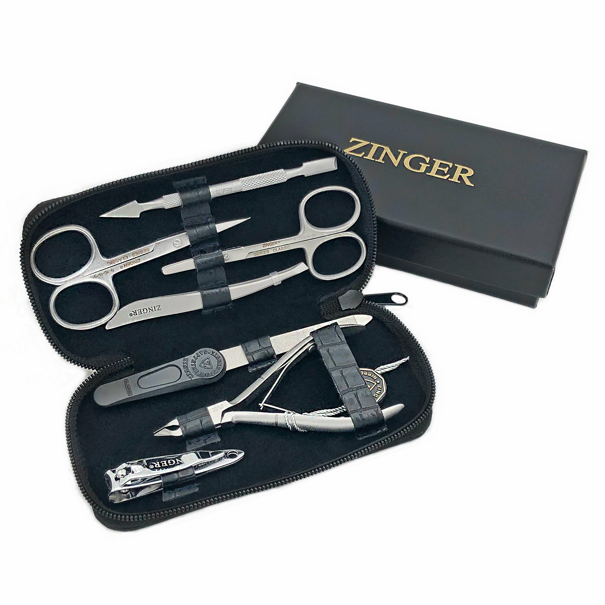 Маникюрный набор ZINGER на молнии 8105, мужской, 7 предметов, чехол черный крокодил глянцевый