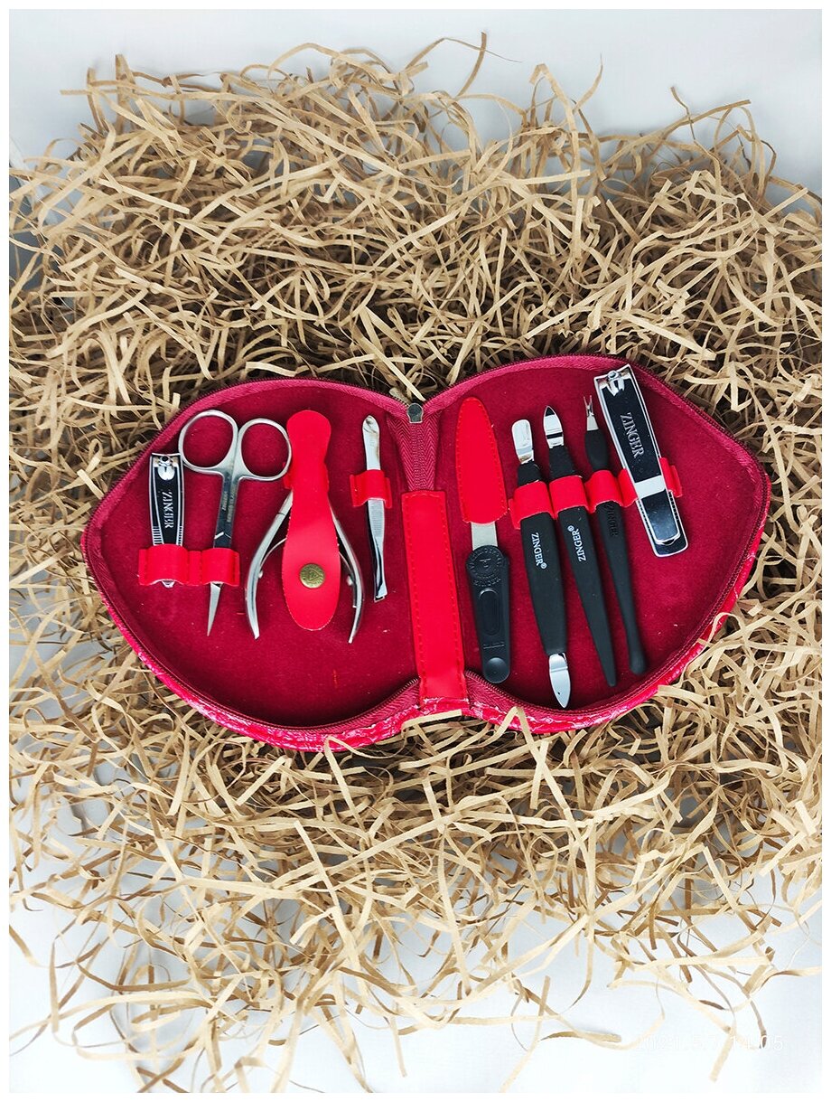 Маникюрный набор в виде сердца на молнии MS-21003-1-S, ZINGER, 9 предметов, цвет чехла красный интересное:
