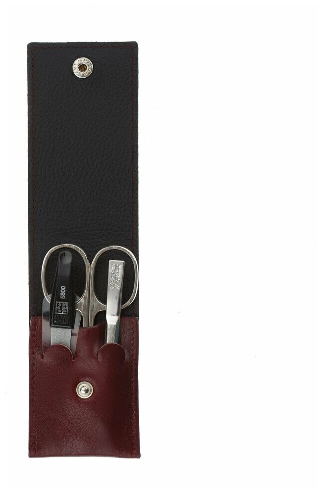 Маникюрный набор YES, 3 пр. Футляр: натуральная кожа, цвет бордово-красный, 9144