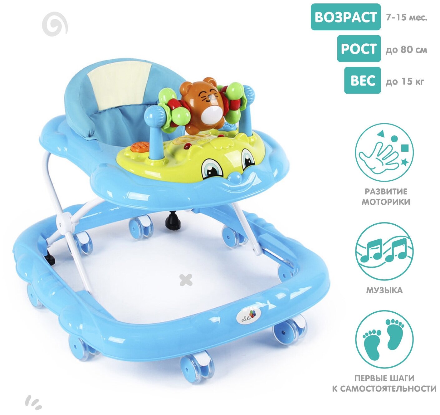 Купить Ходунки «Мишутка», 8 силик. колес, муз., свет, игрушки, голубой 6635321