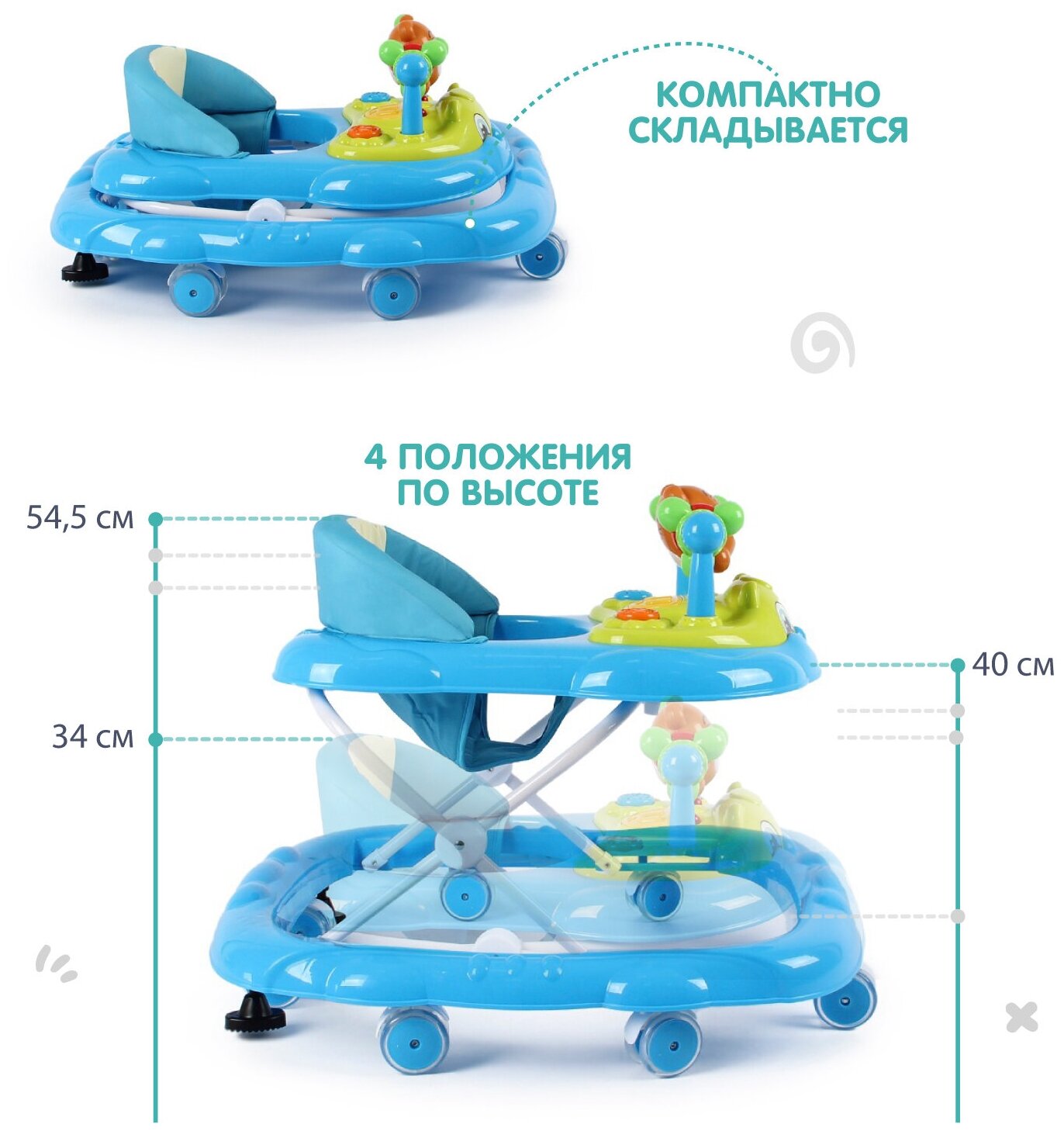 Ходунки «Мишутка», 8 силик. колес, муз., свет, игрушки, голубой 6635321 интересное: