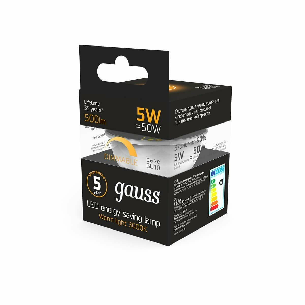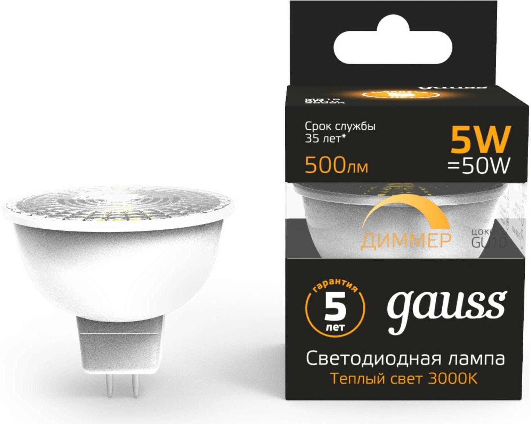 Лампа Gauss LED MR16 GU10-dim 5W 500lm 3000K 101506105-D интересное: