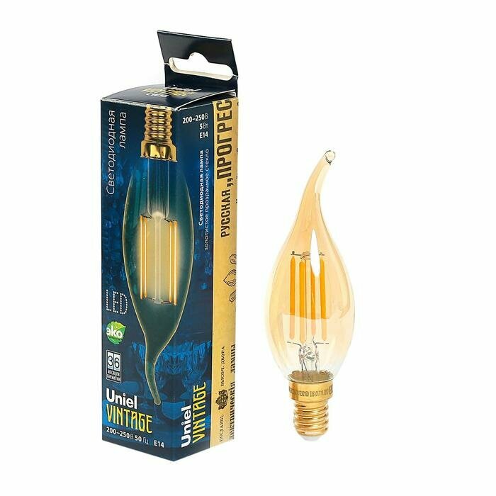 Светодиодная лампа Uniel Vintage LED-CW35-5W/GOLDEN/E14 GLV21GO Форма «свеча на ветру», золотистая колба. Картон. ТМ