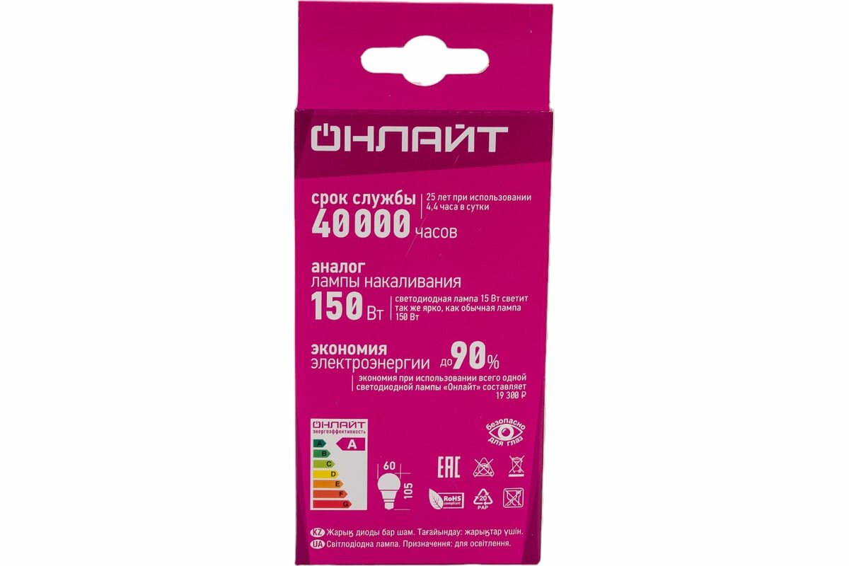 Лампа светодиодная онлайт 80879, E27, A60, 15 Вт, 4000 К