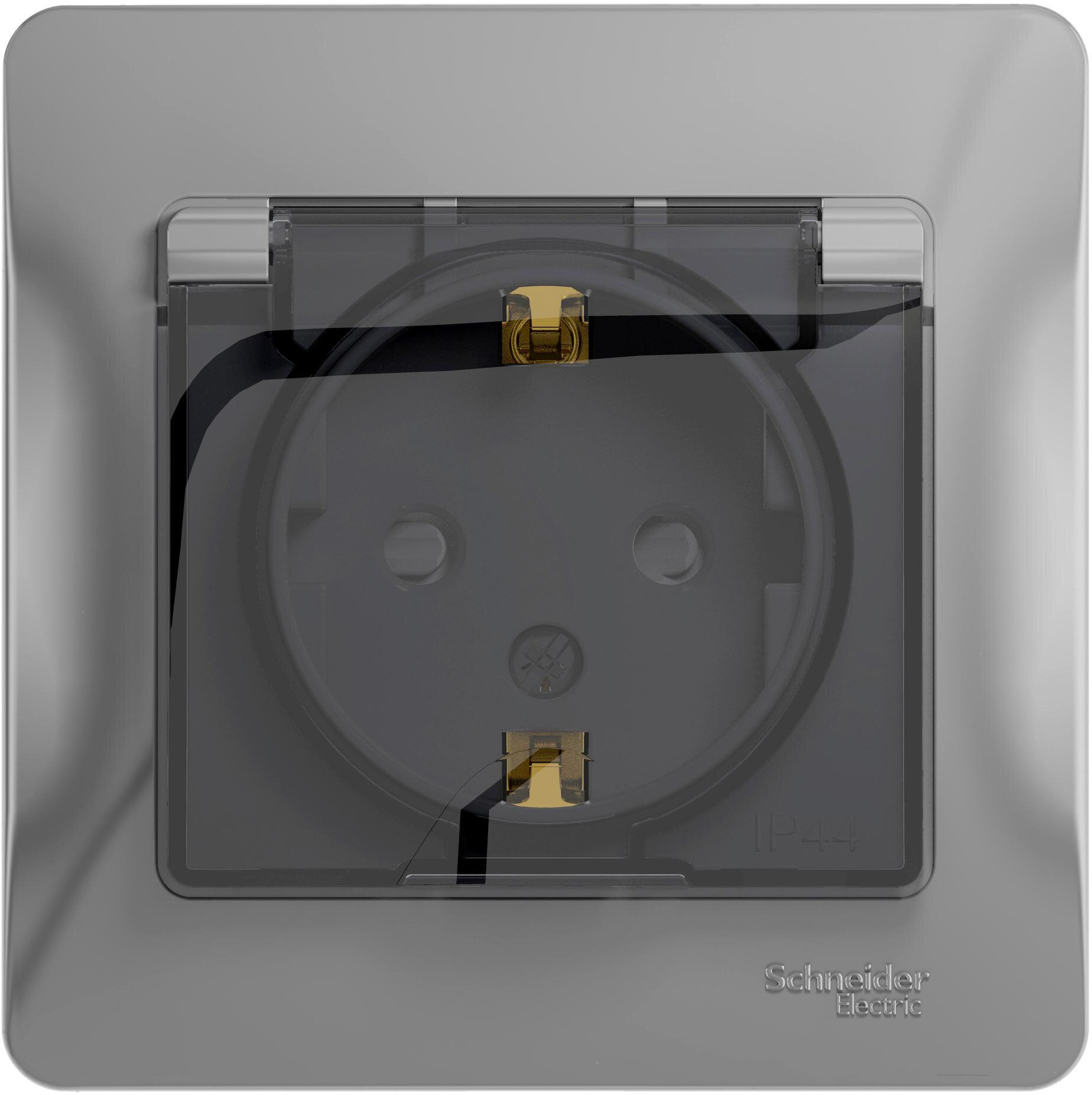 (16 шт.) Schneider Electric Glossa Алюминий Розетка с заземляющими контактами со шторками с крышкой в сборе с рамкой IP44 скрытая установка GSL000348
