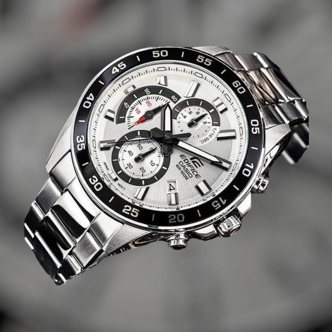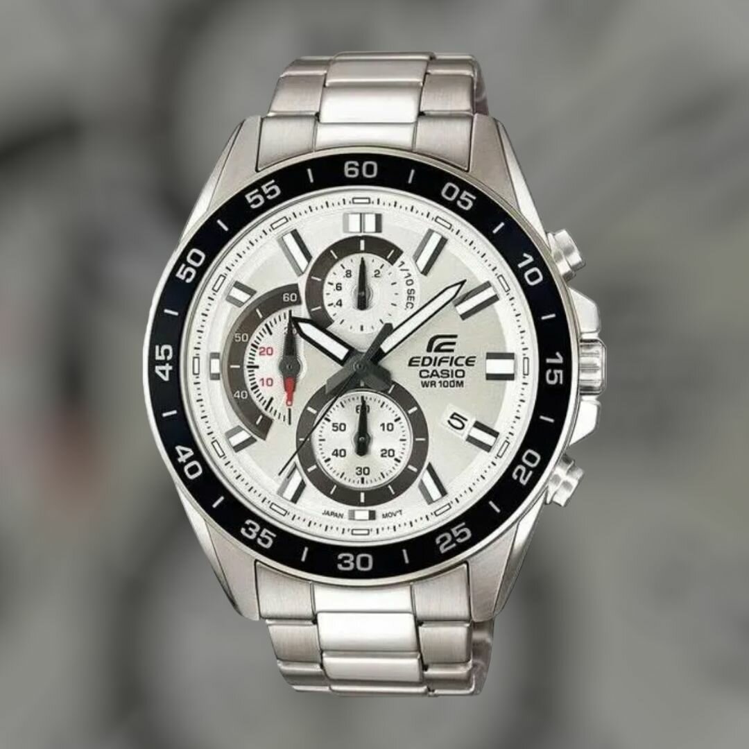 EFR-571D-1A Casio наручные часы кварцевые WR100 (10 атм) мужские серебряный, черный отображение числа подсветка стрелок минеральное стекло