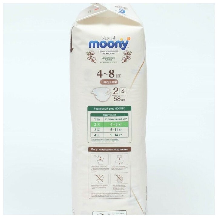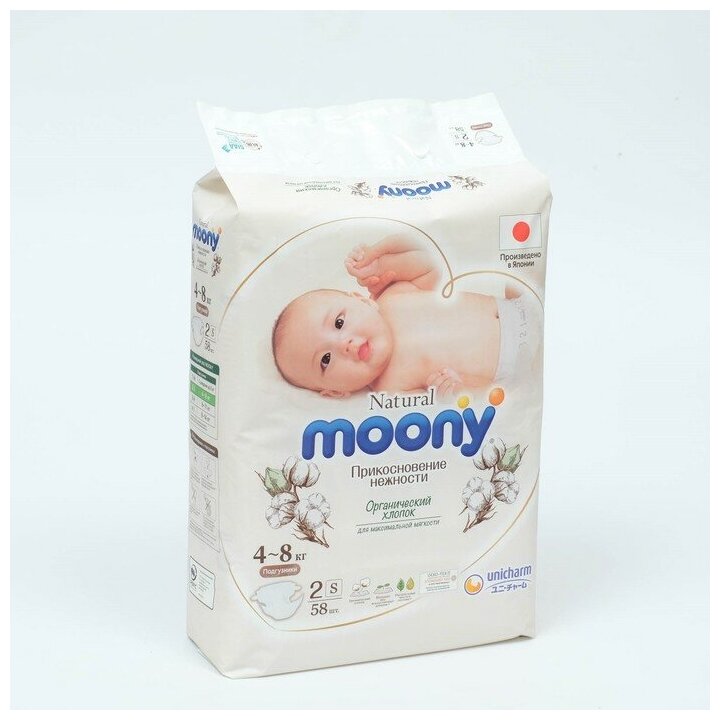 MOONY Natural подгузники, S (4-8 кг), 58 шт. NEW интересное: